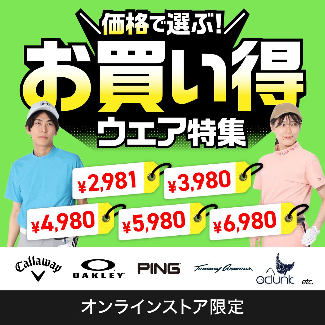 ゴルフウェア選びをもっとお得に楽しく!!お得な春夏ウェアを2,981円~揃えました! 半袖シャツからパンツ、アウターまで充実の品揃え!在庫限り!このチャンスをお見逃しなく!
