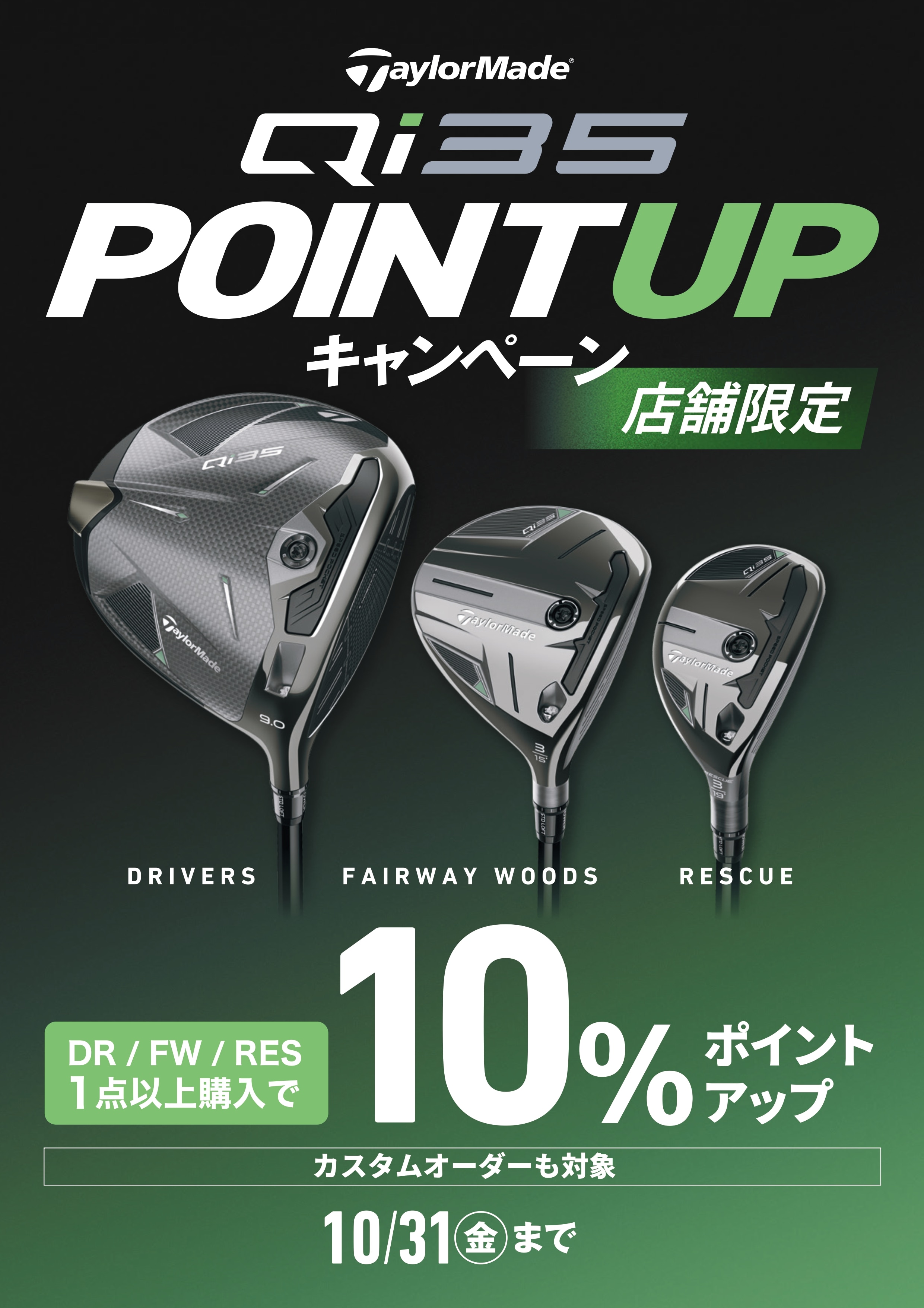 期間中、Qi35シリーズ(Wood) ご購入で スポーツポイント10%還元 させていただきます。 ■対象商品 Qi35シリーズ(DR・FW・RES) ※カスタム含む ※2025年新作モデル限定