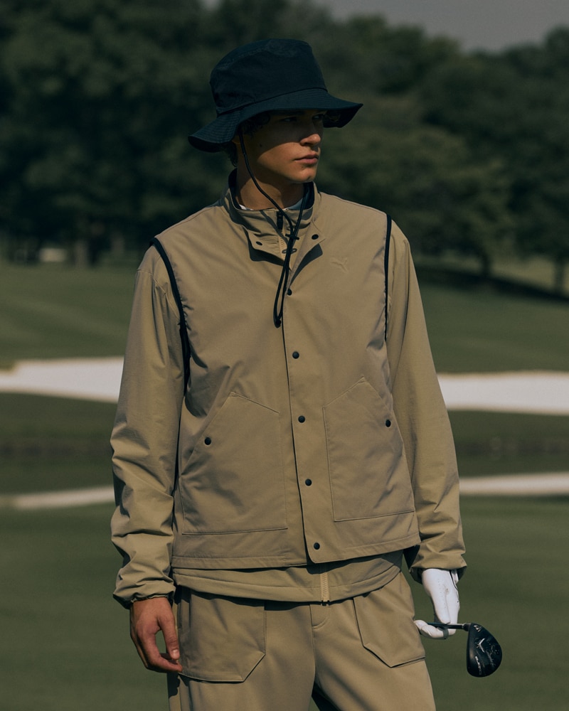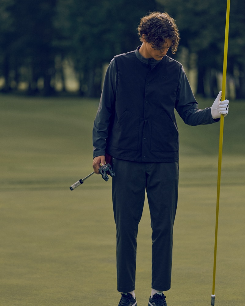 リップストップ素材がカジュアルな印象の保温裏地付きアウター。肌寒い季節も快適です。エンボスCATとPUMA GOLF CLUBロゴ、同色ロゴを配し、ディテールで個性をプラスしたリラックス感のある一着。