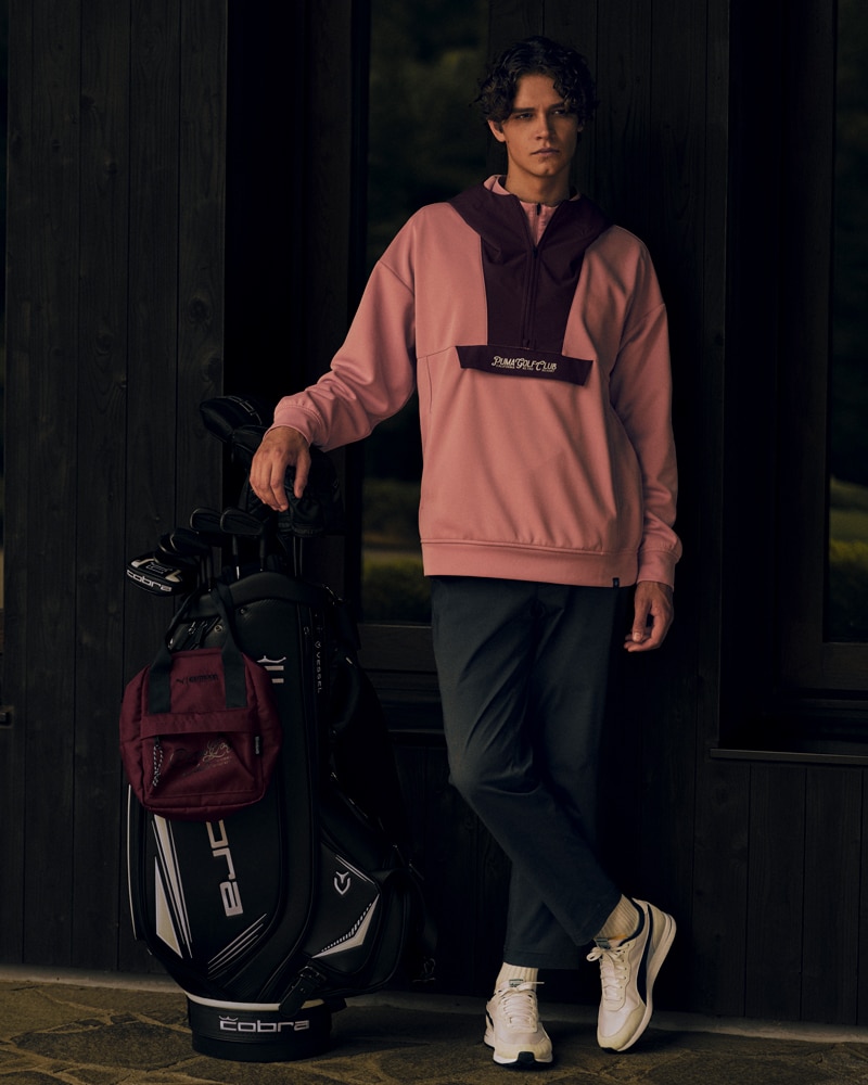 ダンボール素材とリップストップの異素材ミックスがレトロなプルオーバー。ワイドシルエットでゆったりとカジュアルな着こなしに。PUMA GOLFロゴとエンボスCATがアクセントの、こだわりのデザインです。