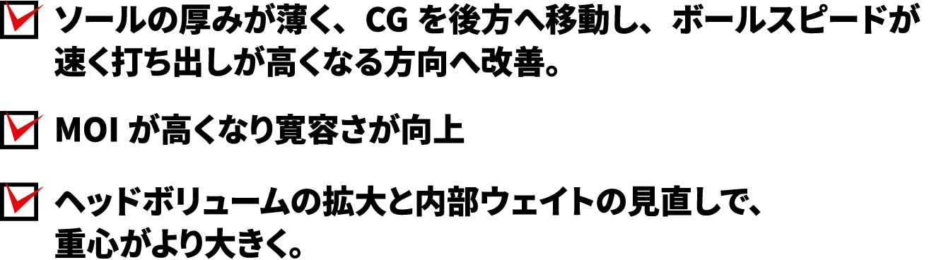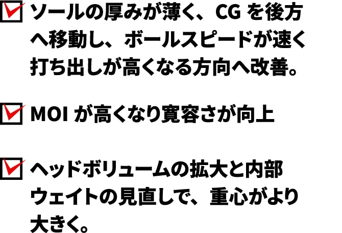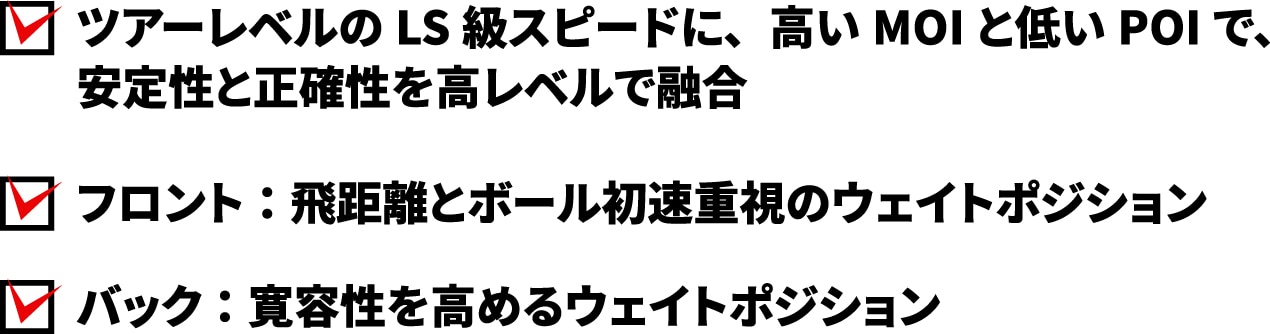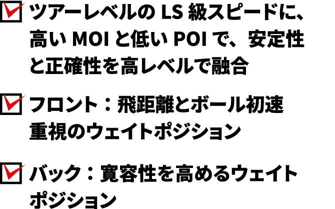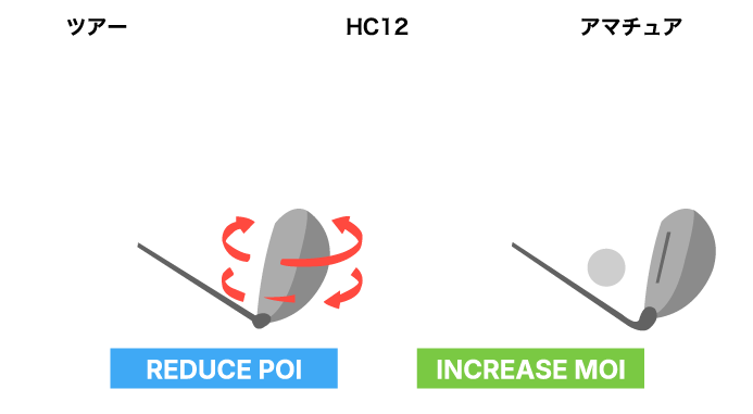 低POIによりスイングとインパクト時の回転安定性が向上し、