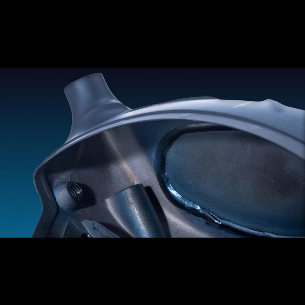 新構造クラウンリブ搭載。 リブを搭載することでインパクト時の衝撃による、クラウンのカーボン素材のたわみを抑え、心地よい打感、打音へと進化。