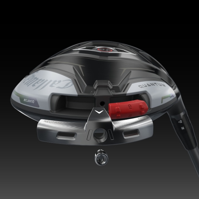 ソール後方に搭載されたディスクリート・ウェイトは内部の約9gのウェイトと約1gのウェイトの位置を入れ替えが可能。ドローバイアス、ニュートラルバイアスを選択することができる。