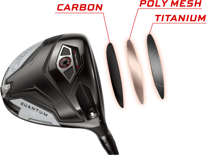 | フェース素材 / 構造 | 鍛造 FS2S チタン+ポリメッシュ+カーボン / TRI-FORCEフェース / フェースカップ |