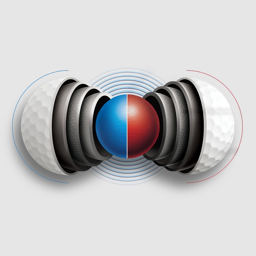 低密度コアがソフトな打感と低スピンの飛びを両立。2〜4層目がアイアンの操作性を高め、4〜5層目がグリーン周りで卓越したスピン制御を発揮。全領域で理想の性能を追求。