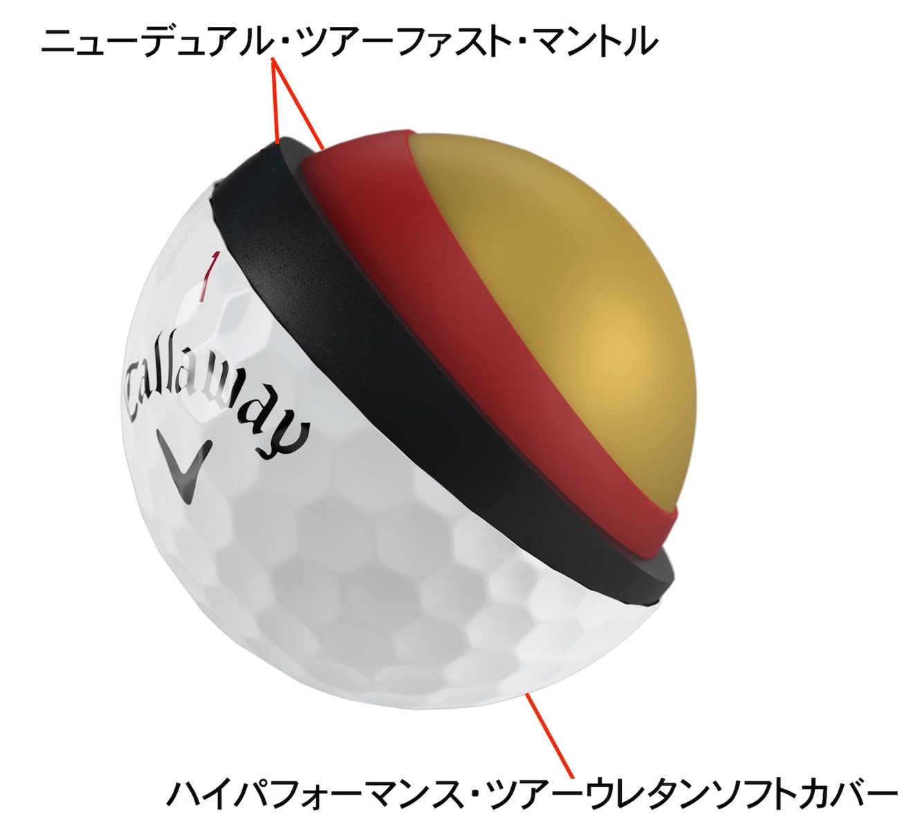 新素材マントルで初速を上げつつ、ドライバーでは低スピン化。アイアンやアプローチでは強烈なスピンとソフトな打感を維持し、操作性を両立。