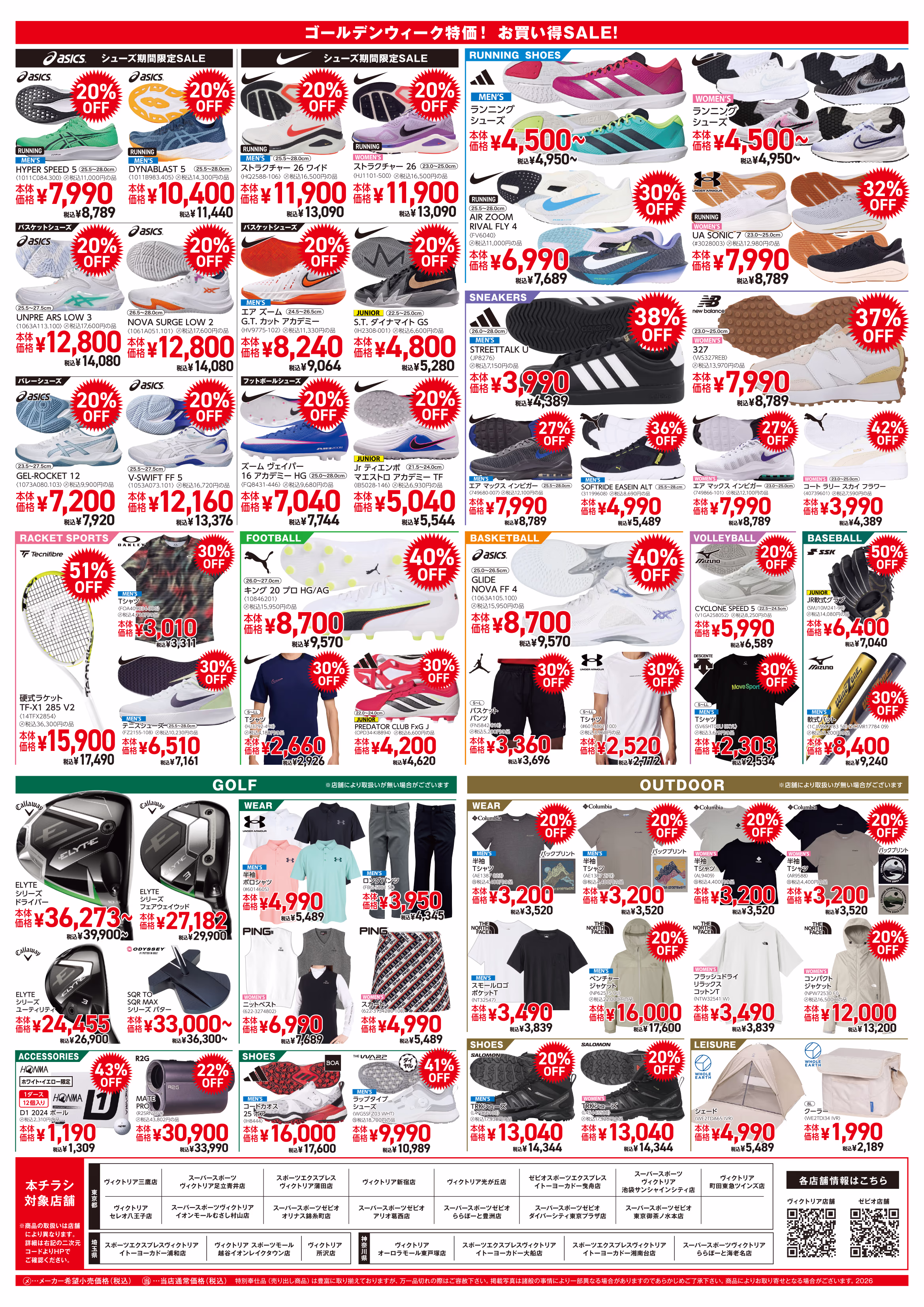 【ヴィクトリア】 <東京都> ヴィクトリア 新宿店 ヴィクトリア 光が丘店 スポーツエクスプレスヴィクトリア 蒲田店 ヴィクトリア 三鷹店 スーパースポーツヴィクトリア イオンモールむさし村山店 ヴィクトリア 町田東急ツインズ店 ヴィクトリア セレオ八王子店 スーパースポーツヴィクトリア 池袋サンシャインシティ店 スーパースポーツヴィクトリア 足立青井店 <神奈川県> ヴィクトリア オーロラモール東戸塚店 スポーツエクスプレスヴィクトリア イトーヨーカドー大船店 スポーツエクスプレスヴィクトリア イトーヨーカドー湘南台店 スーパースポーツヴィクトリア ららぽーと海老名店 <埼玉県> ヴィクトリア 所沢店 ヴィクトリア スポーツモール越谷イオンレイクタウン店 スポーツエクスプレスヴィクトリア イトーヨーカドー浦和店 【スーパースポーツゼビオ】 スーパースポーツゼビオ 東京御茶ノ水本店 スーパースポーツゼビオ オリナス錦糸町店 スーパースポーツゼビオ アリオ葛西店 スーパースポーツゼビオ ららぽーと豊洲店 スーパースポーツゼビオ ダイバーシティ東京 プラザ店 ゼビオスポーツエクスプレス イトーヨーカドー曳舟店 ※町田東急ツインズ店、セレオ八王子店、CeeU Yokohama店は野球用品の取扱いがございません。 ※町田東急ツインズ店ではサッカー用品の取扱いがございません。 区画内にサッカー専門店「岸和田スポーツ様」がございます。