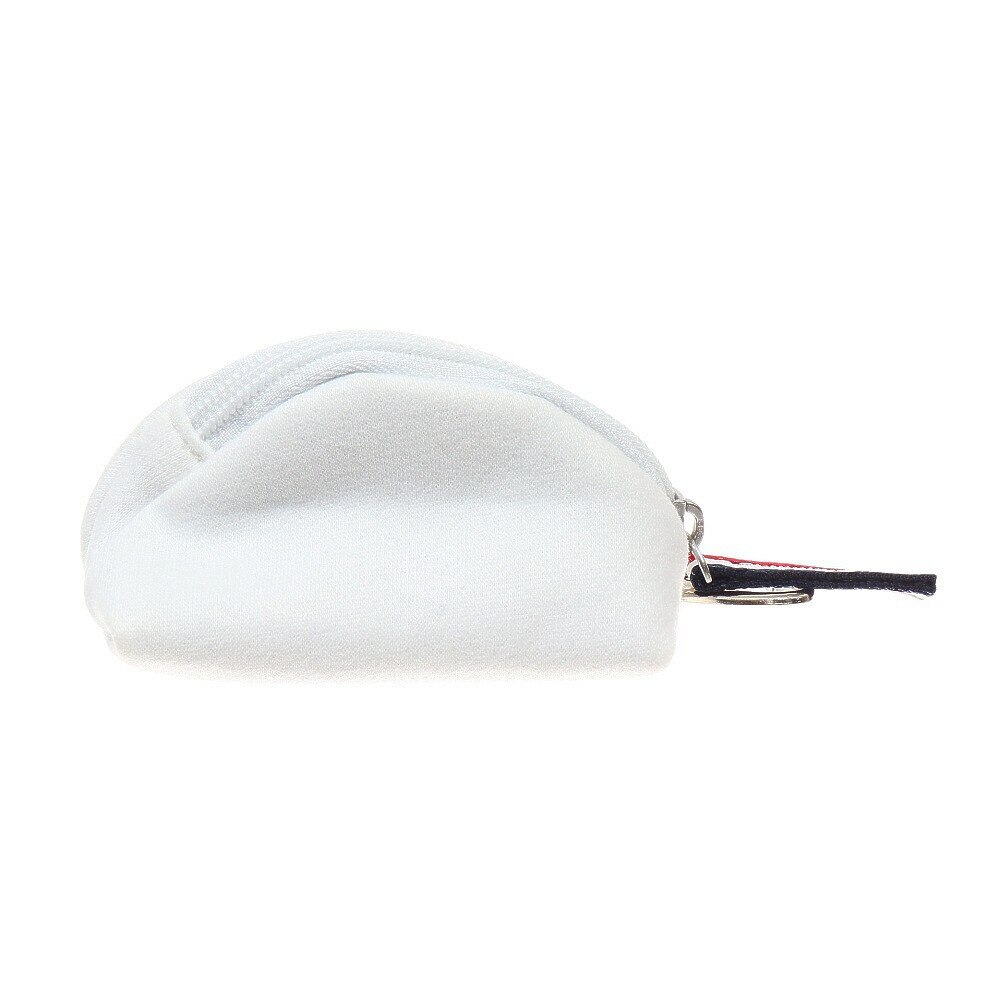 ●スウェット素材を使用したボールポーチです。便利なフック付きで、ゴルフボールが2個収まる大きさです。引手に3色使いのテープを使用し、正面にCロゴを刺繍で入れています。