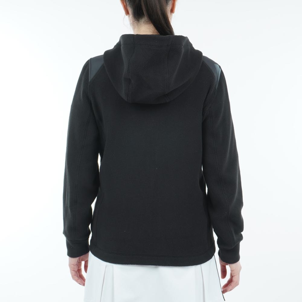 ●フワッと軽く起毛加工を施したフリース素材を使用。胸部分は密度の高いタフタ素材を重ねて、胸部分の冷気の進入を軽減するデザインです。