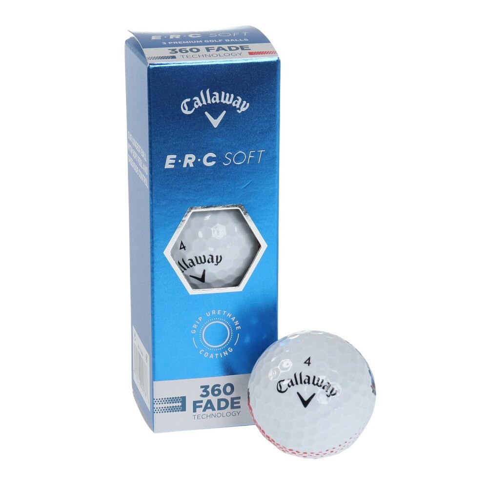 ●リニューアルによって飛びとスピン性能がさらに向上したE・R・C SOFTボールに、まったく新しいアライメントを採用したモデル、「E・R・C SOFT 360 FADEボール」が加わりました。ラインがグラデーションのように入れられている360FADE テクノロジーにより、転がっている最中は色のあるところが消えては、また出てくる(フェードイン、フェードアウト)ように見えます。これにより、ボールがどのように回転しているのかが、これまで以上にわかりやすく、パッティングのレベルアップに役立てることができます。もちろん、ターゲットに対してのセットのしやすさも充分です。ボール自体のパフォーマンスはE・R・C SOFTボールと同様で、ハイパーエラスティック・ソフトファスト・コアやハイブリッドカバー、新開発のグリップ・ウレタンコーティングシステムを搭載。