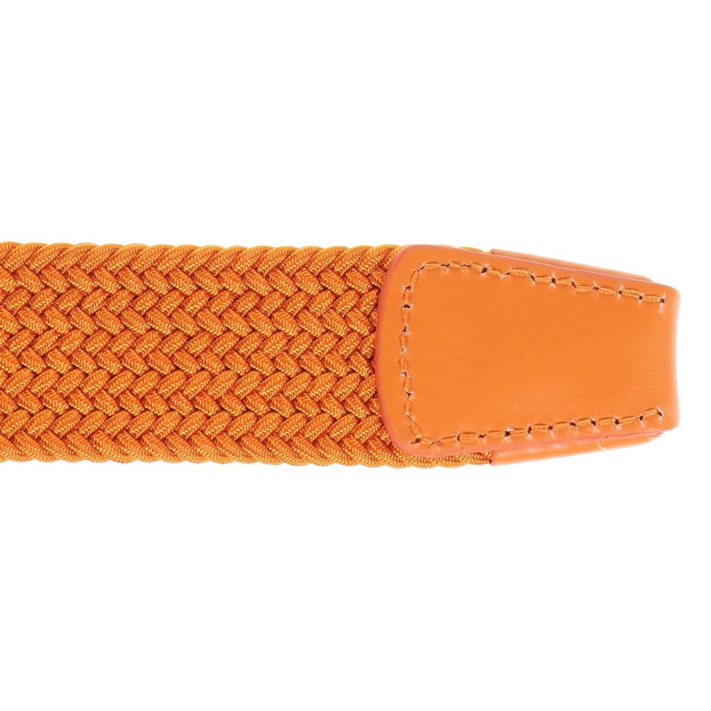 ●伸縮性に優れた編み込みベルト。ロゴ入りメタルバックル。ベルトの先端とベルトループには、ベジタブルタンニン鞣しのレザーを使用。