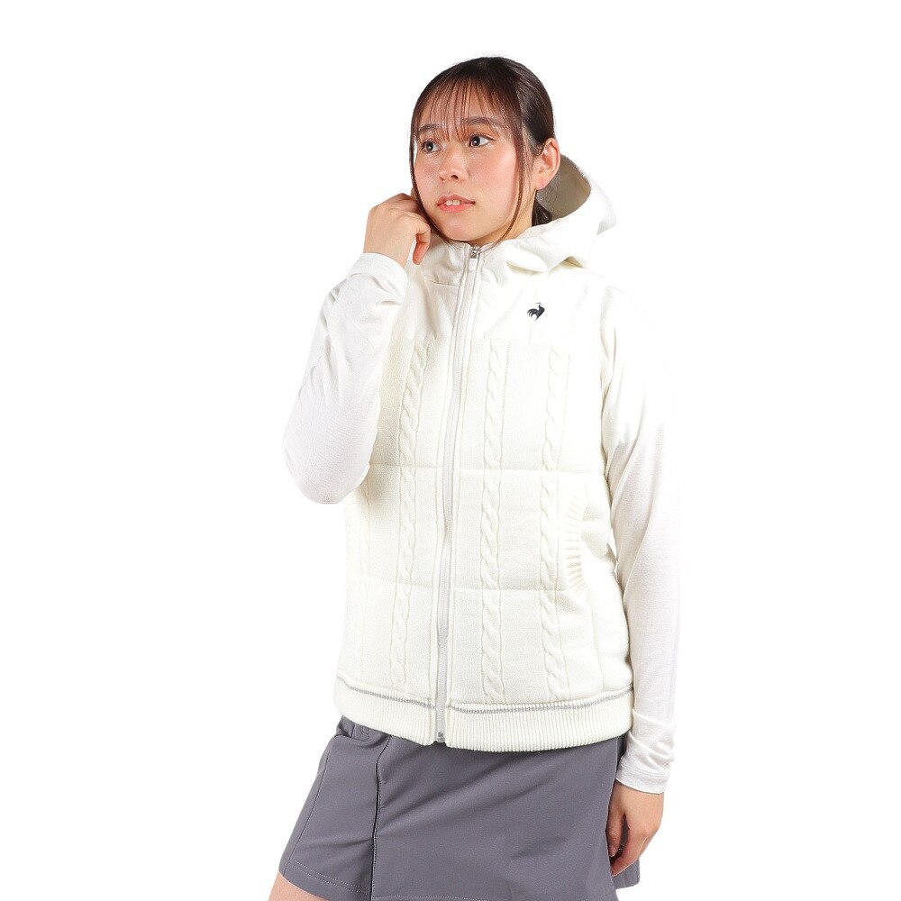 ●あたたかみのあるケーブルセーターとコーデュロイ生地をドッキングし、中わたを入れたアウターベスト。女性らしく着用できる素材感とシルエットにこだわりました。防風性のある裏地を使用しており、さらにヒートナビ機能付きなので、しっかり防寒できます。