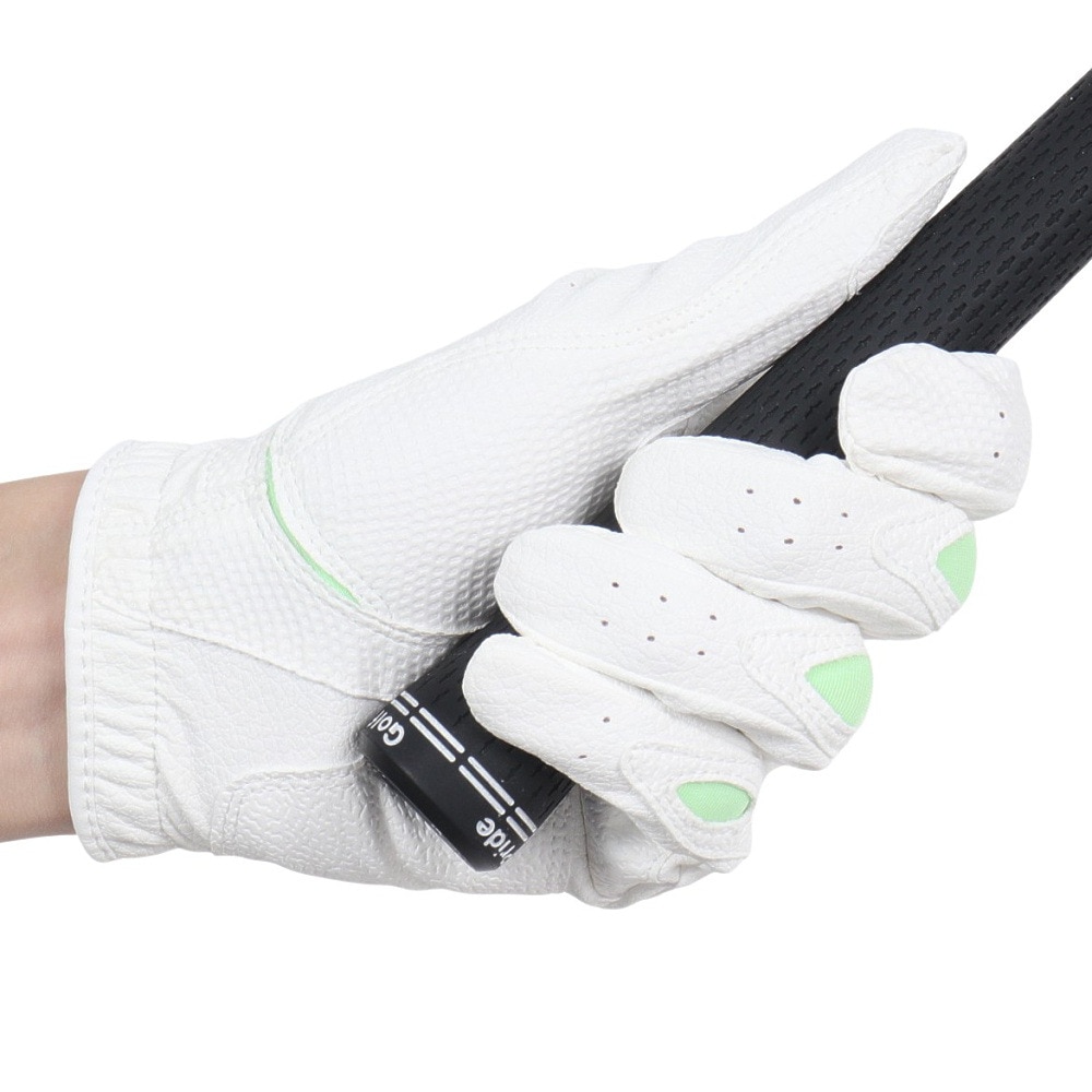 ●厚手でしっかり握れる:従来モデルから平側のパッチの面積を約20%アップしクラブとの密着度を向上させている。厚みがあり密着度が高まることでクラブをしっかりと握れ、より強く振ることができる。