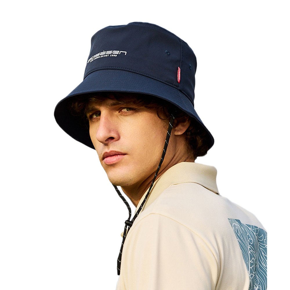 ●超撥水バケットハット。トリコット素材を使用し、しわになりにくく、布帛見えの洗練された仕上がり。超ストレッチ性を誇り、接触冷感とUVカット機能も兼ね備えたマルチ素材。