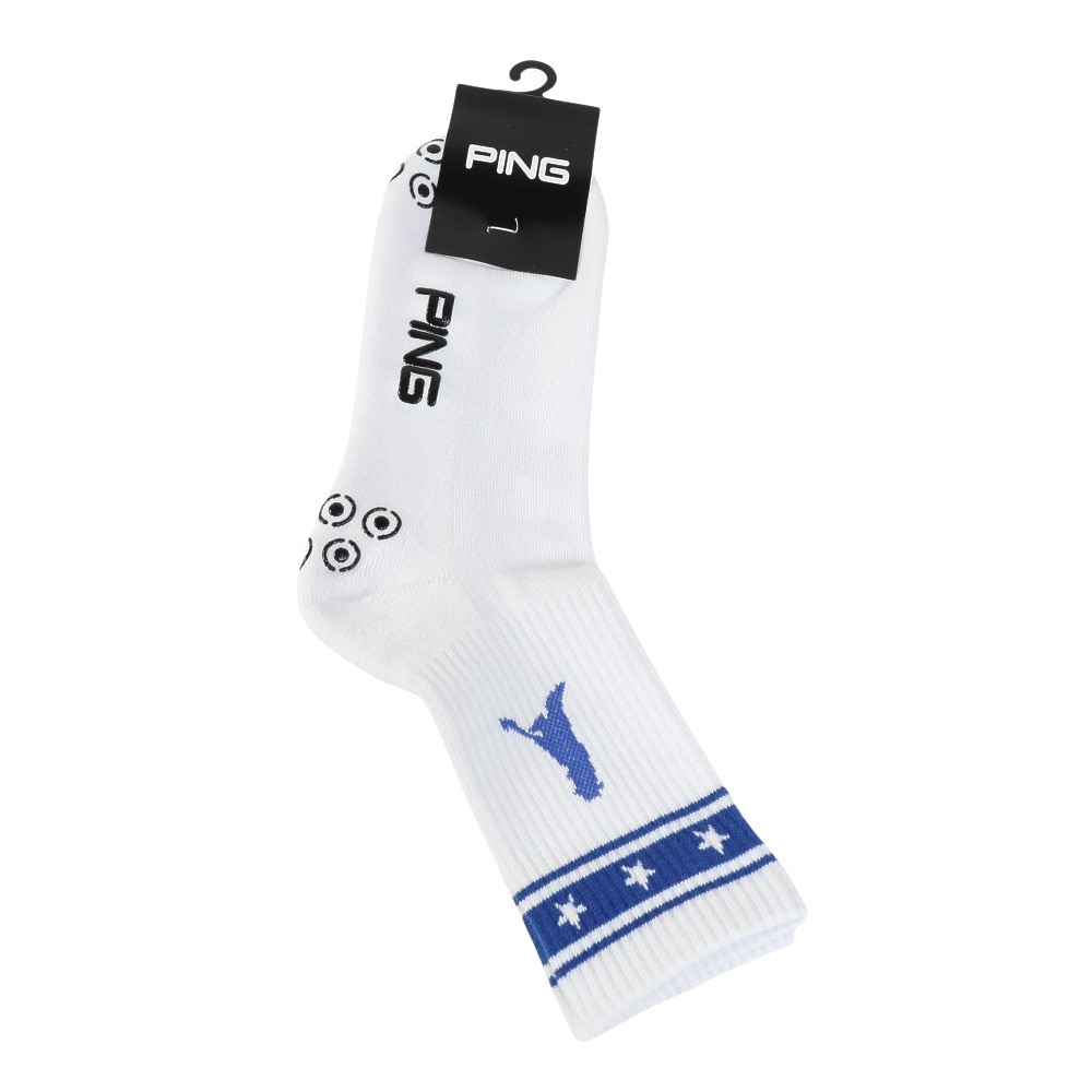 ●アリゾナを想起する星柄を調和させたラインやPINGの人気キャラクターのMr.PINGで存在感を与えた、Mr.PINGラインデザインミドルソックス。