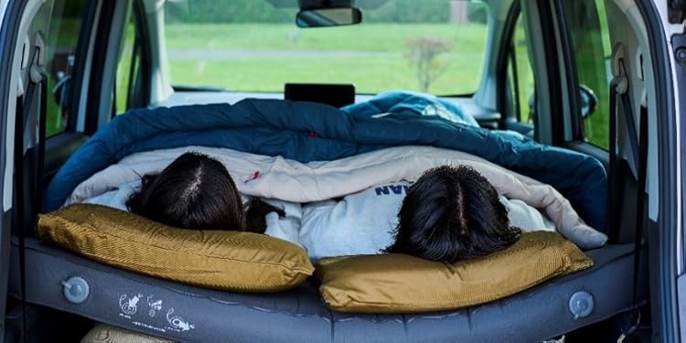 マットは10cmの厚みがあるので凸凹の影響を受けにくく車内でもぐっすり睡眠!