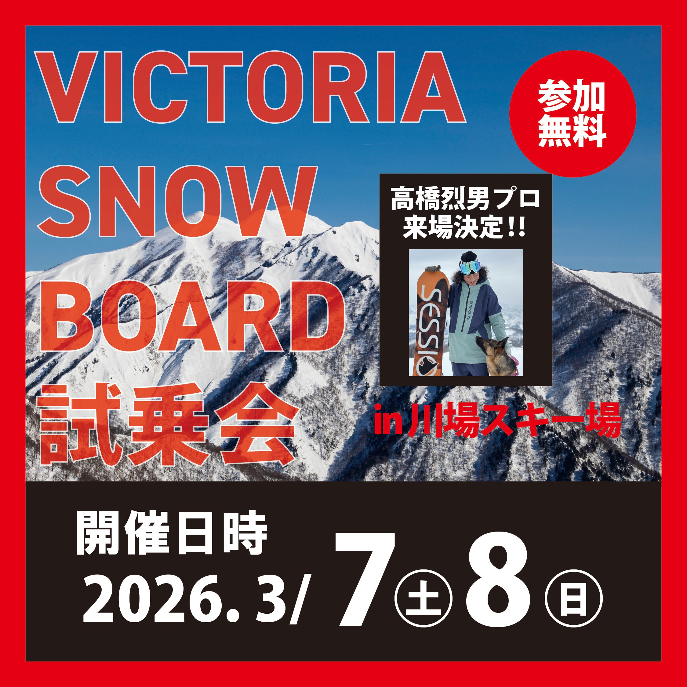 ■対象カテゴリー スノーボード ■スケジュール 2026年4月3日(金) 2026年4月4日(土) 2026年4月5日(日) ■参加費 ヴィクトリアでの事前登録で無料! エントリーフォーム内、 「事前エントリーショップ」で 「VICTORIA (夏油)」を選択してください! ※当日参加は500円 ■開催場所 夏油高原リゾート