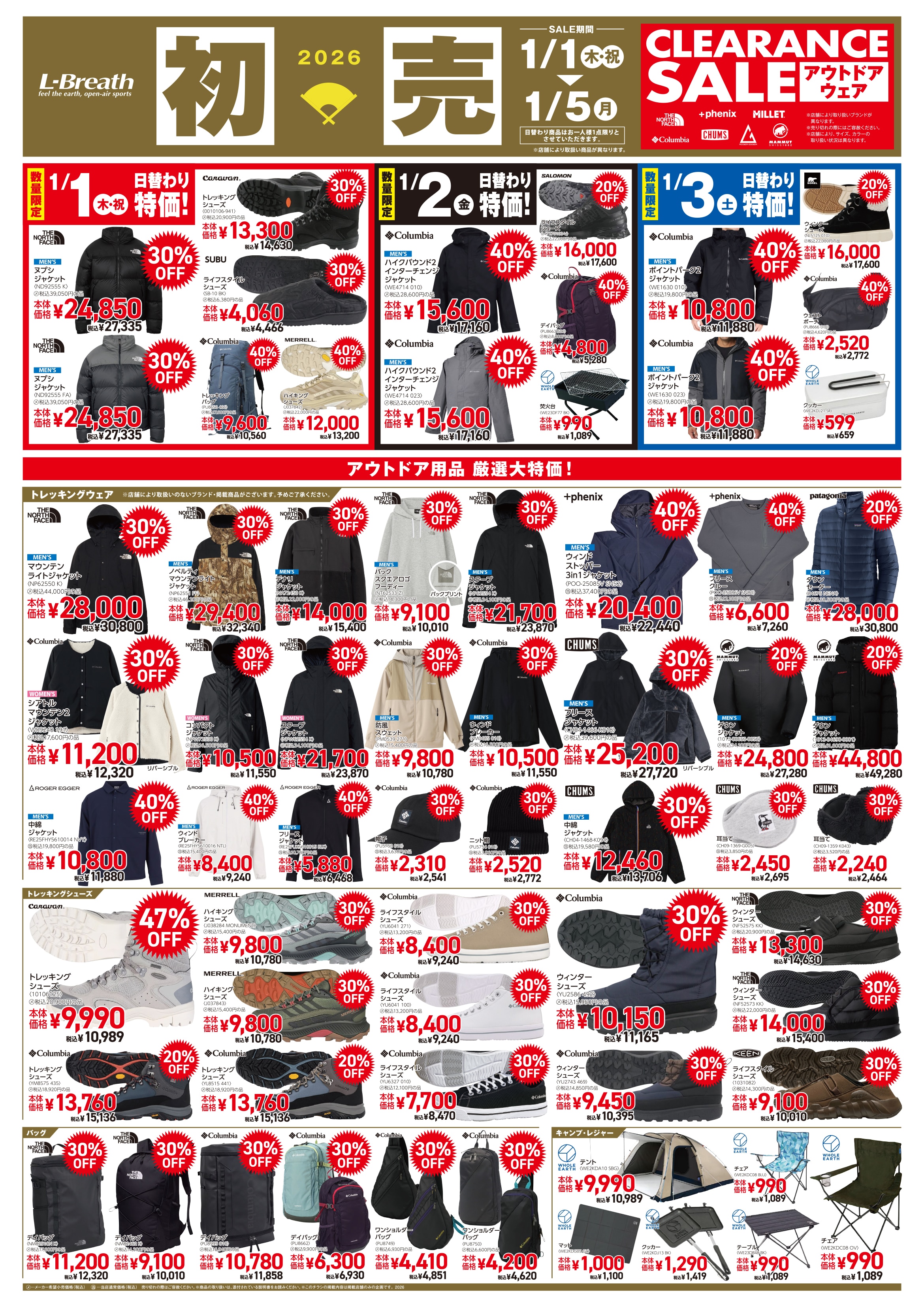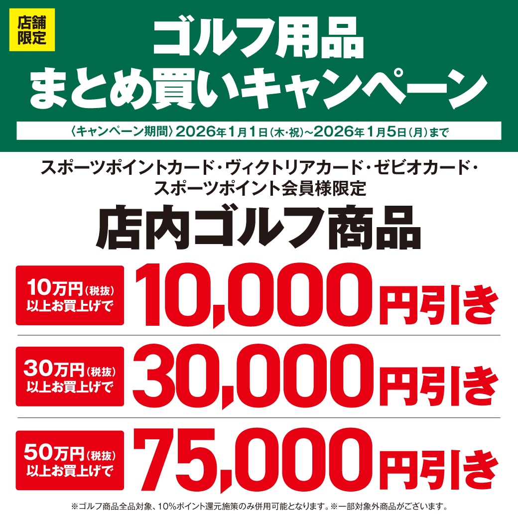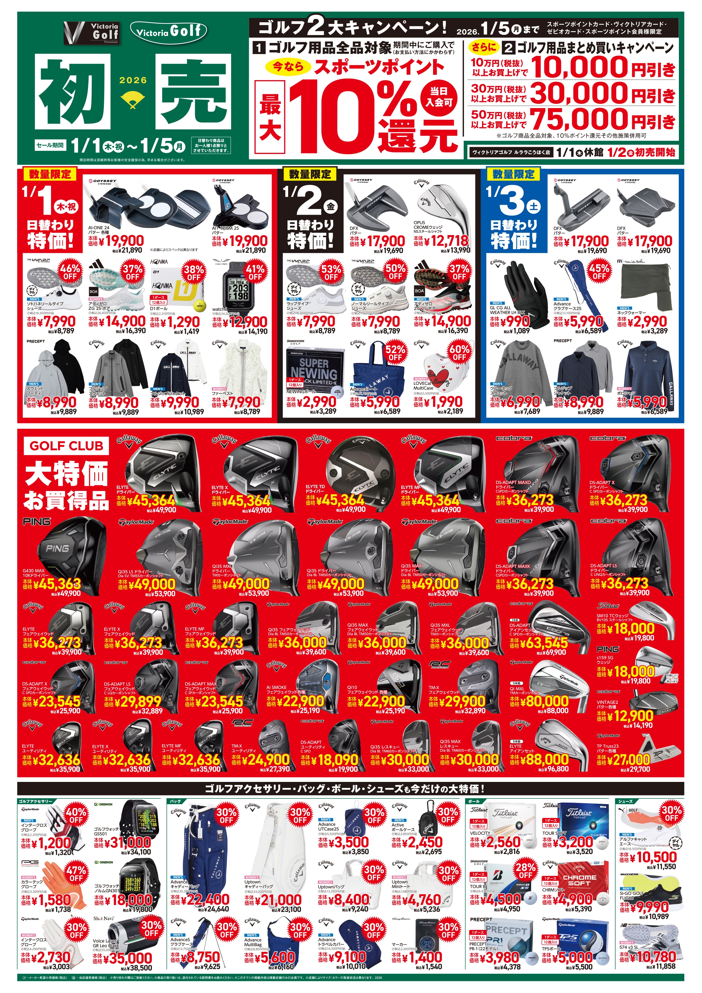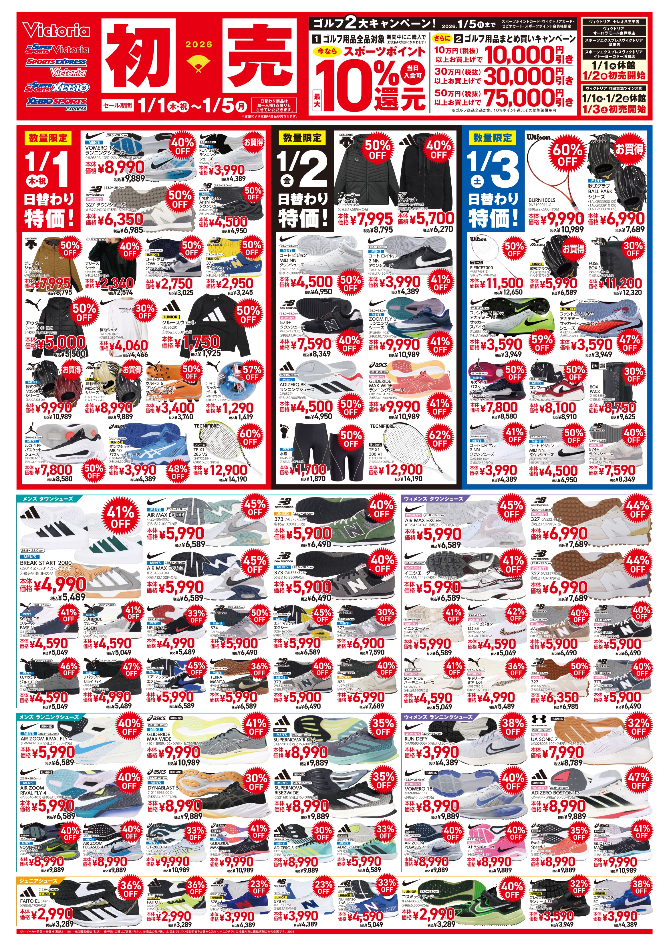 1月1日(木)~1月5日(月)まで ヴィクトリア2026初売り を開催いたします! 新年最初の大チャンス! 元旦から最高のスタートダッシュを!! ※オンラインストアは対象外です。 ※店舗によって取扱商品は異なります。 ※詳しい取扱商品に関しては店舗まで お問い合わせください。