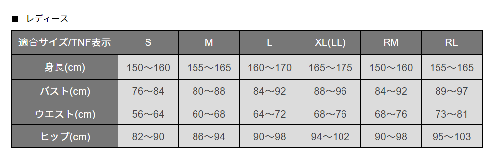 THE NORTH FACE公式のレディースのサイズ表もご紹介しますので、ご自身のサイズが分からないという方は参考になさってください。