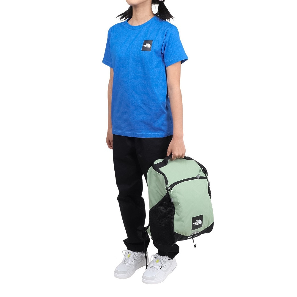●風合いのよいオーガニックコットンと、乾きやすいリサイクルポリエステルを使用した、柔らかくしなやかな肌触りのニット生地のTシャツ。左胸にTHE NORTH FACEのスクエアロゴ入りです。