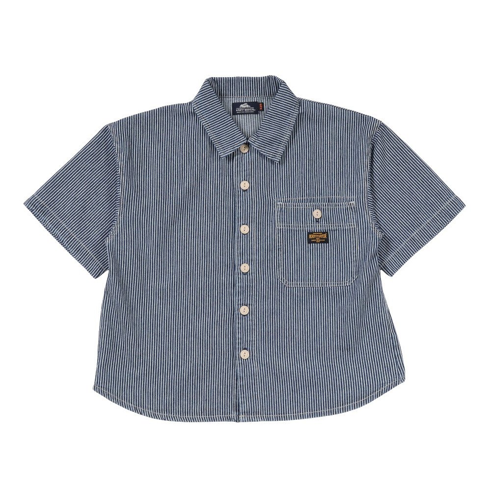 ●程よい厚みの6.5オンスデニムを使用したワークデザインシャツ。肩からヨークにかけて施したトリプルステッチが、タフで大人顔負けの仕上がり。