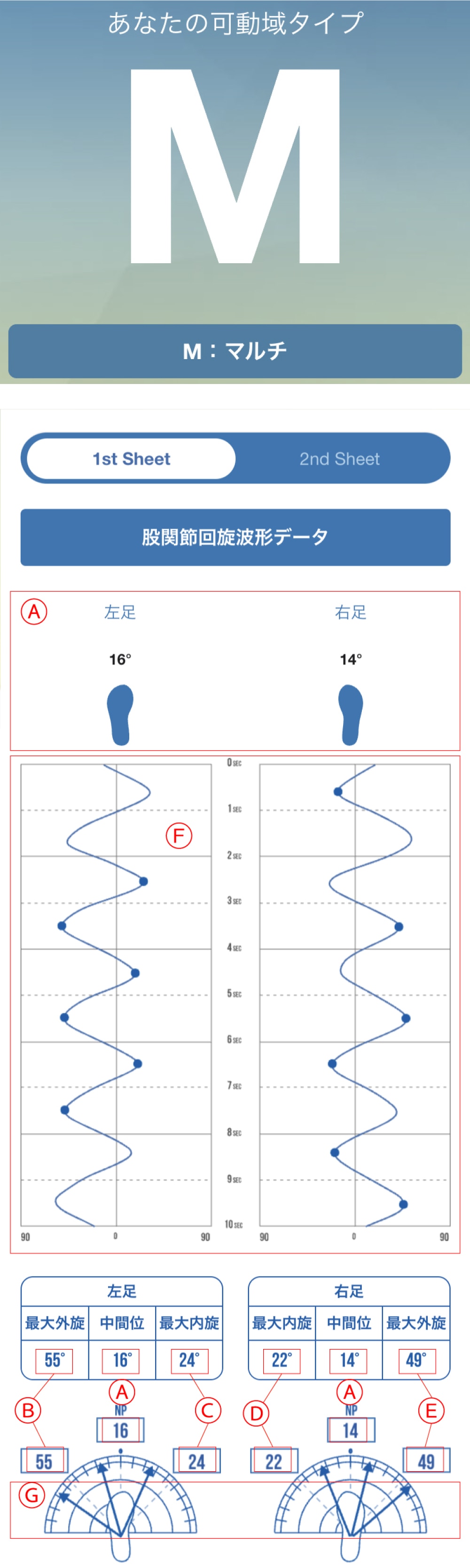 内外旋回角度のバランス、センター角の左右差、可動域の広さ、全てにおいて完璧な可動域です。トップアスリートとなると基質を持っており、努力次第でどこまでも上達が出来る希少な逸材。
