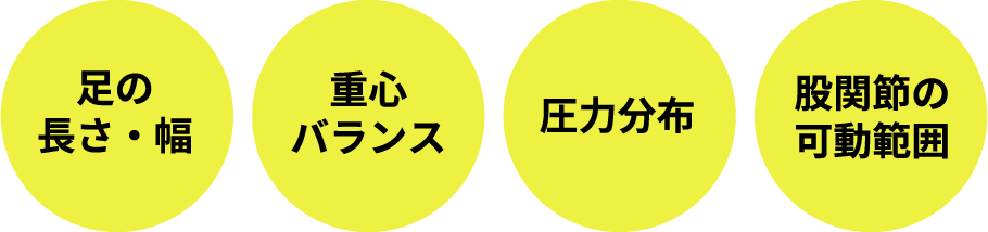 正確な足長・幅といったサイズや、重心バランス 圧力分布の計測を行う専用の測定器です。