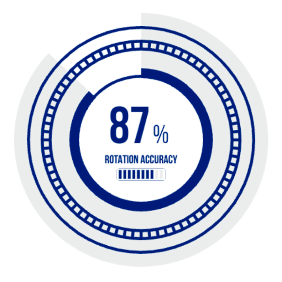 大きなブレも無く、比較的安定して回旋運動をする事が出来ています。反復運動の再現性は高く、自分のイメージと身体の動きをリンクさせる事が出来ていると思います。回旋運動精度としては平均的な数値です。反射的な運動精度を高めたり、計測した可動域が余裕ある状態まで広げされると、さらに回旋運動精度は上がっていくと思います。