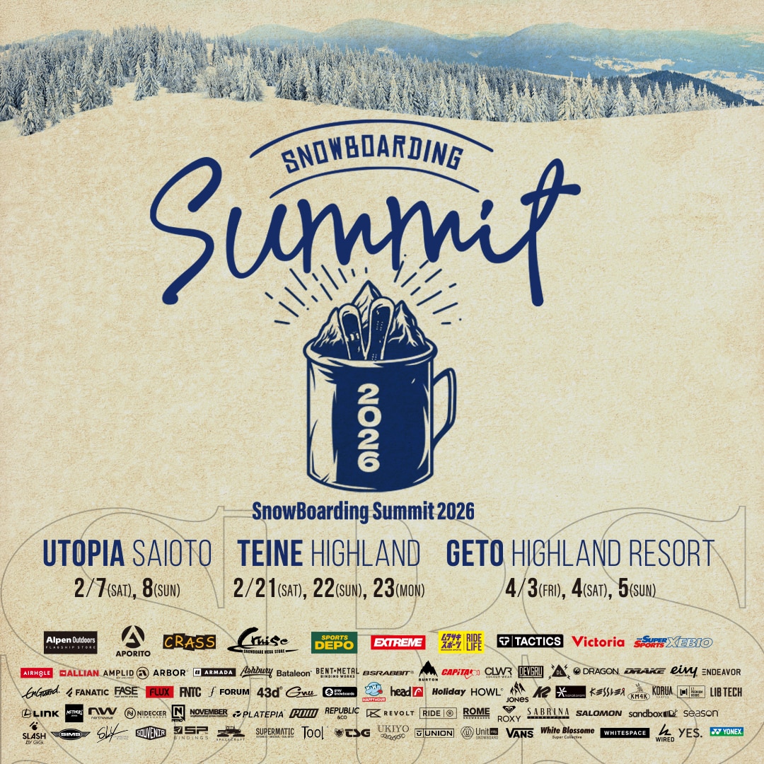 ■対象カテゴリー スノーボード ■スケジュール 2026年4月3日(金) 2026年4月4日(土) 2026年4月5日(日) ■参加費 ヴィクトリアでの事前登録で無料! エントリーフォーム内、 「事前エントリーショップ」で 「VICTORIA (夏油)」を選択してください! ※当日参加は500円 ■開催場所 夏油高原リゾート