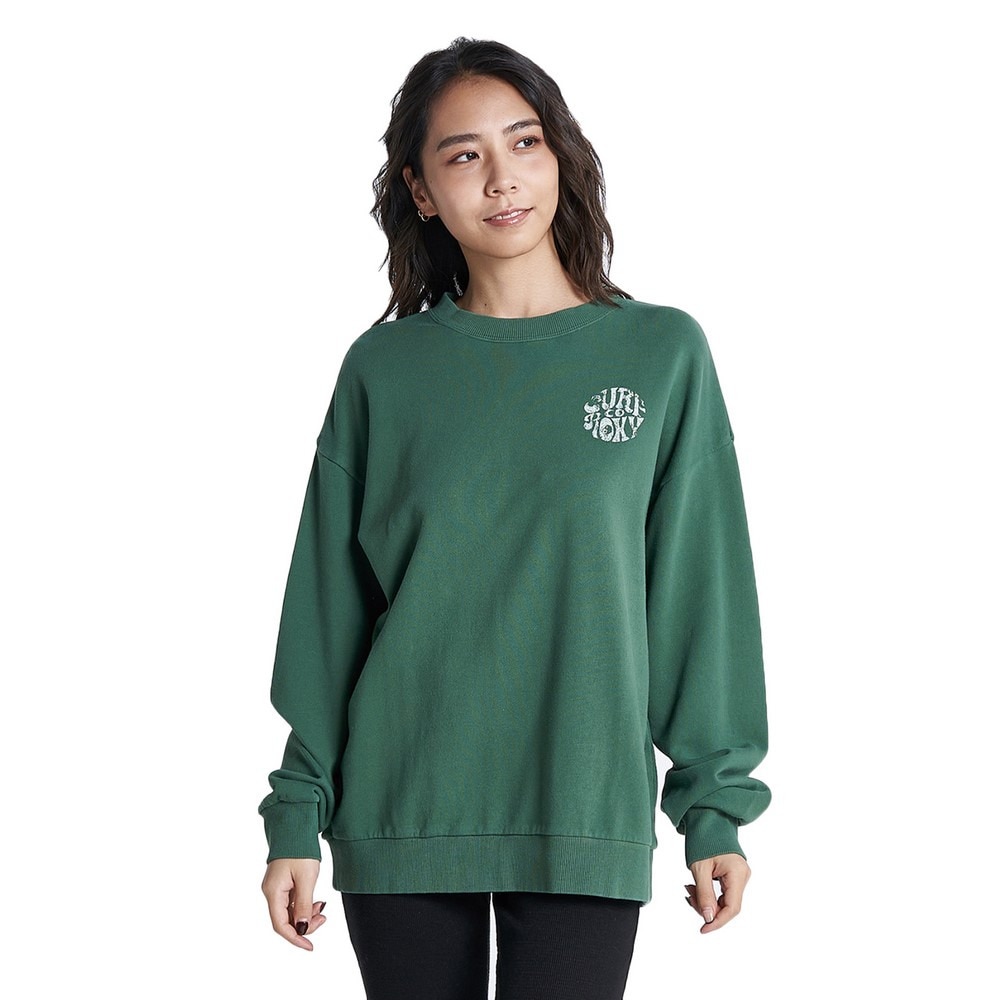 ●ゆったりとしたシルエットで、裾と襟もと、袖口はリブ仕様です。レトロなデザインのかすれプリントがユーズドライクな印象で、サーフ気分を盛り上げてくれます。