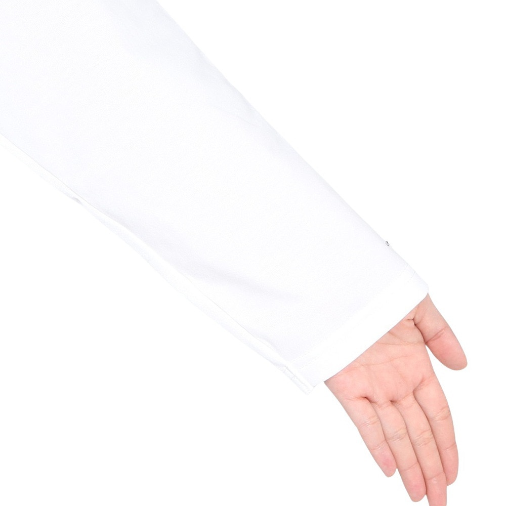 ●コットンライクなポリエステル素材のロングスリーブTシャツ。