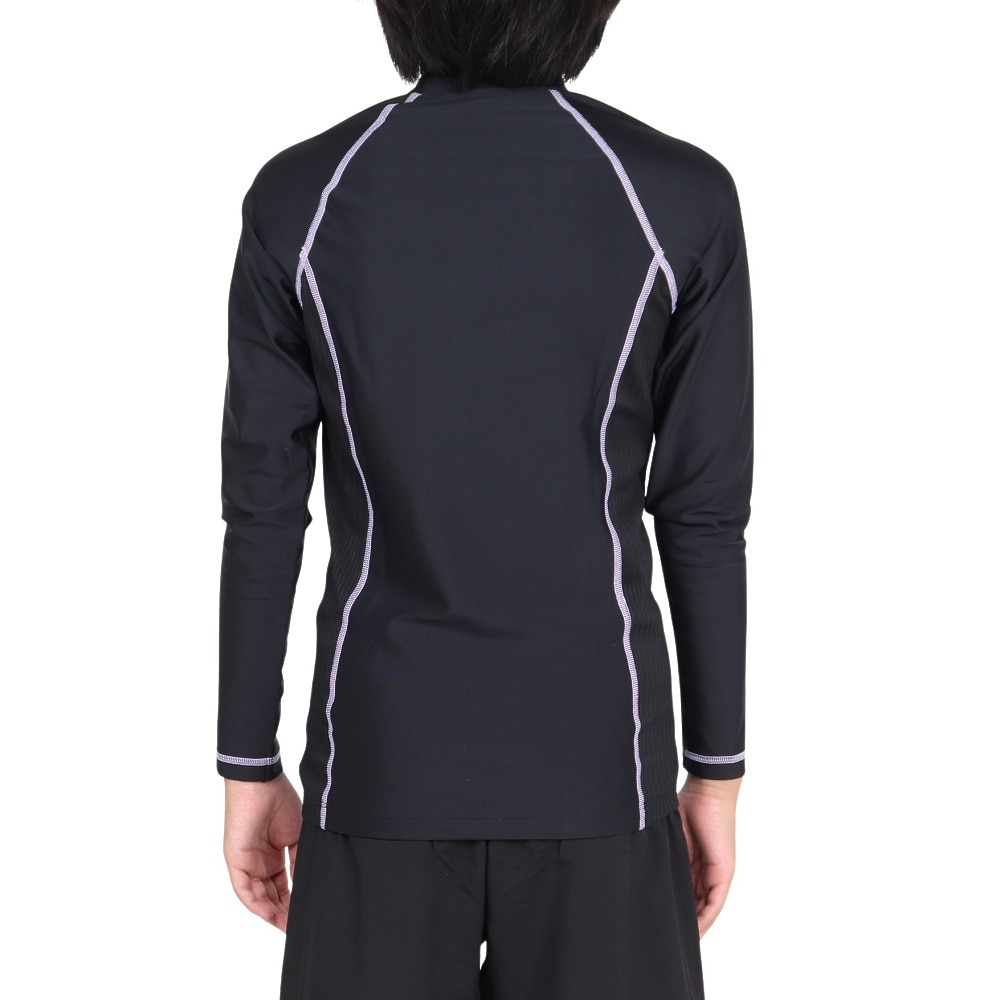 ●日焼け対策やプールでの冷え対策におすすめ、長袖ラッシュガード。両サイドには伸びるリブ素材を使い、着替えやすい仕様です。