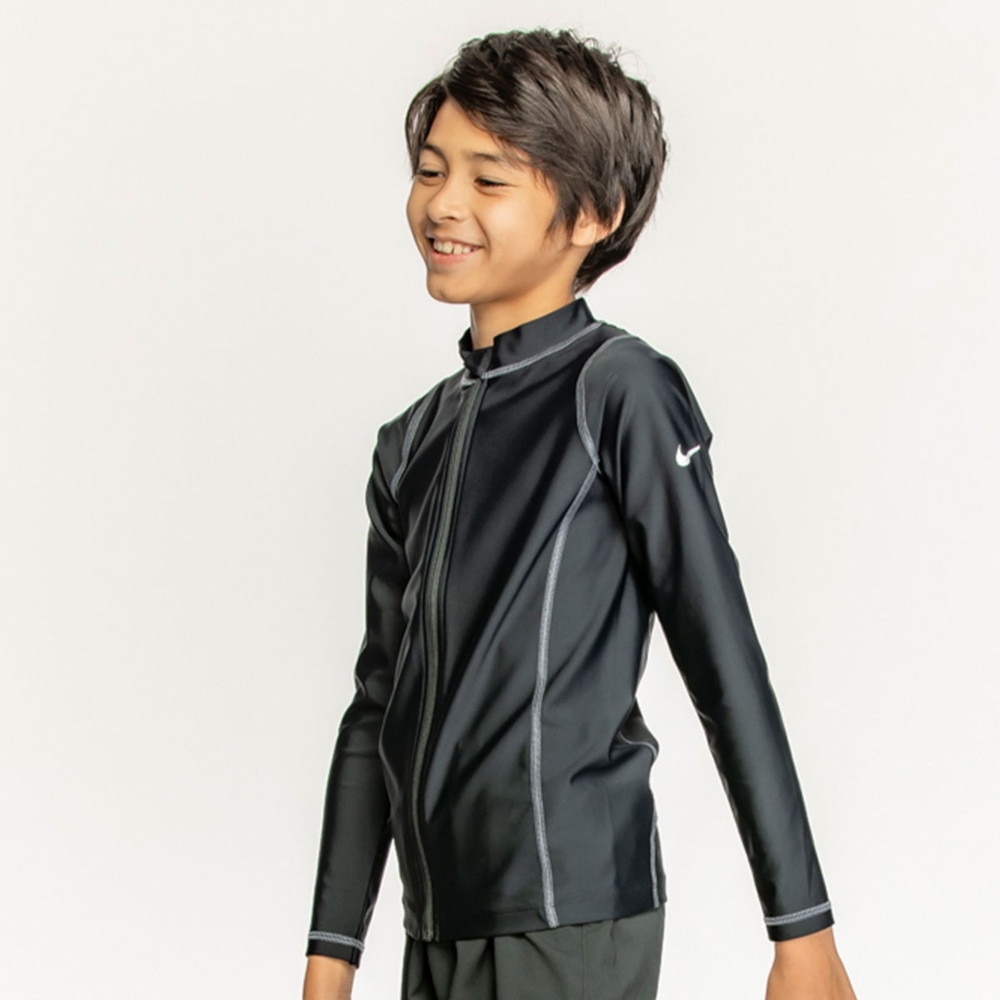 ●ジップ付きで小さなお子様でも着替えやすいデザイン。UPF50+素材採用。