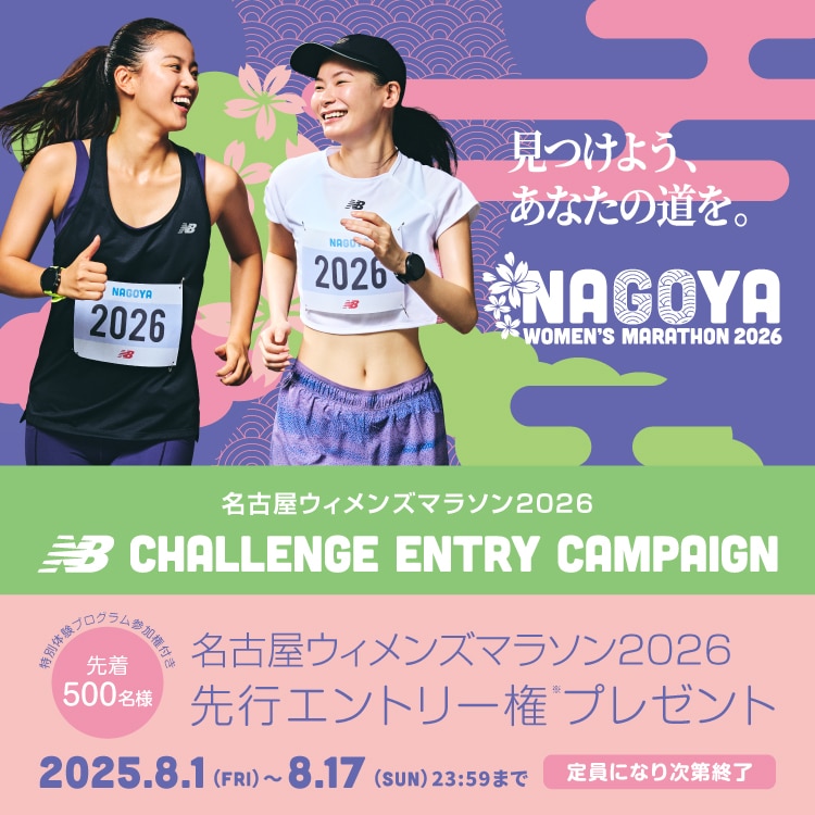 ※ 先行エントリー権は、一般のエントリーに先駆けて優先的に「名古屋ウィメンズマラソン2026」にエントリーできる権利です。参加料18,000円(税込)はお客様のご負担となります。指定期間内のエントリー登録、料金の振り込みを完了することで、出走権が確定となりますのでご注意ください。