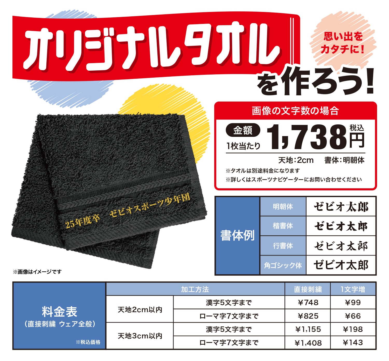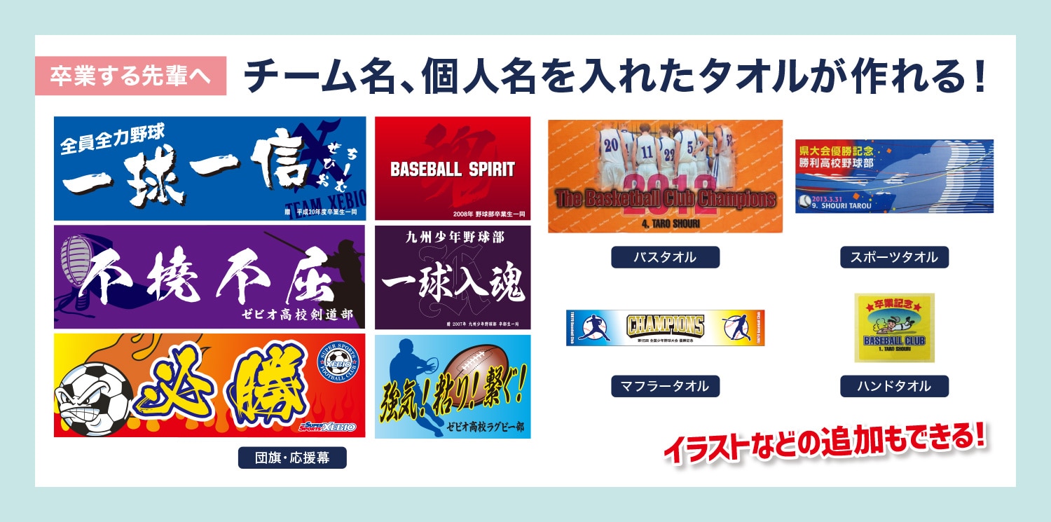 部活ごとに選べる色紙、ボール、マグカップなど