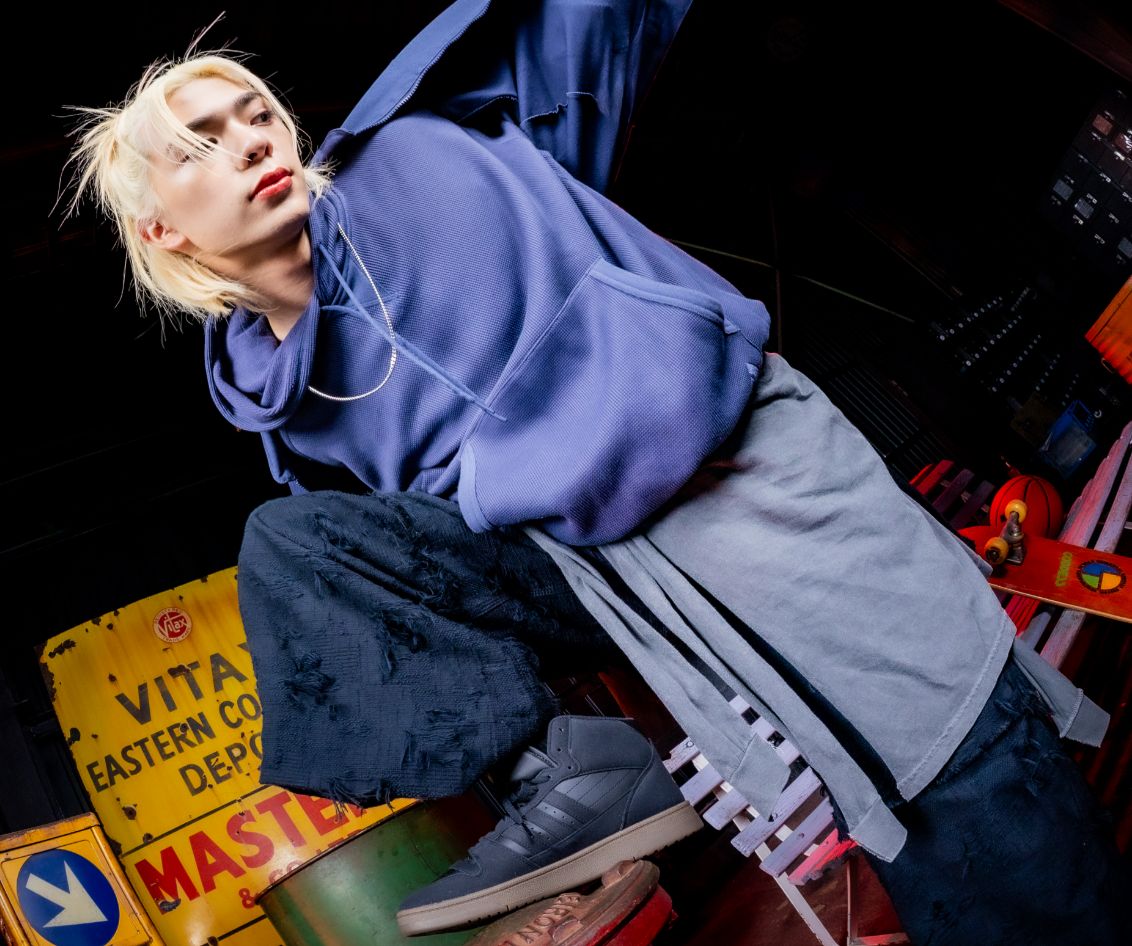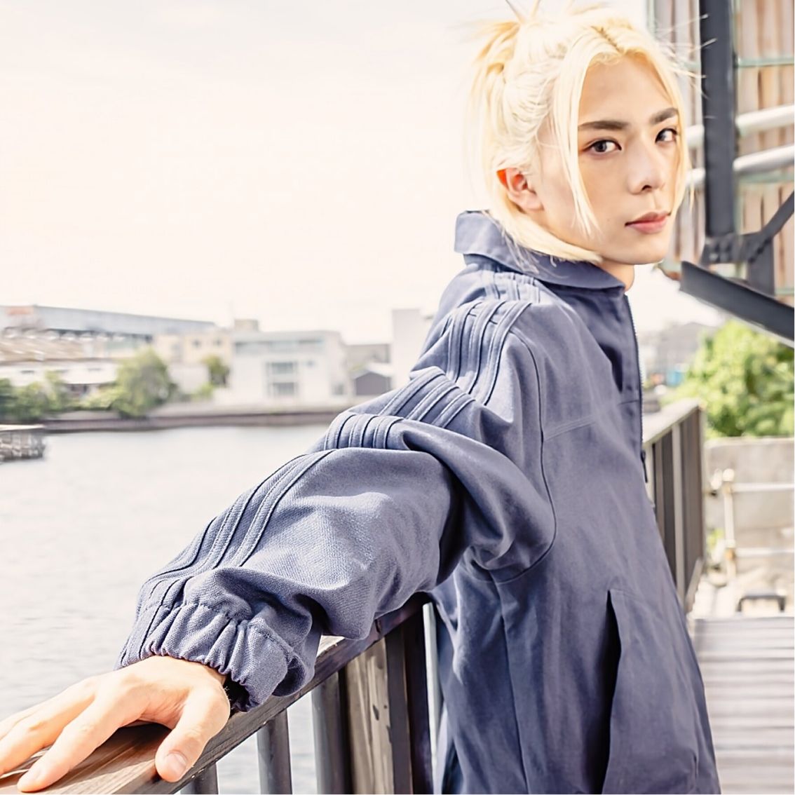 ワッフルの素材感が特徴のフルジップトラックトップ。