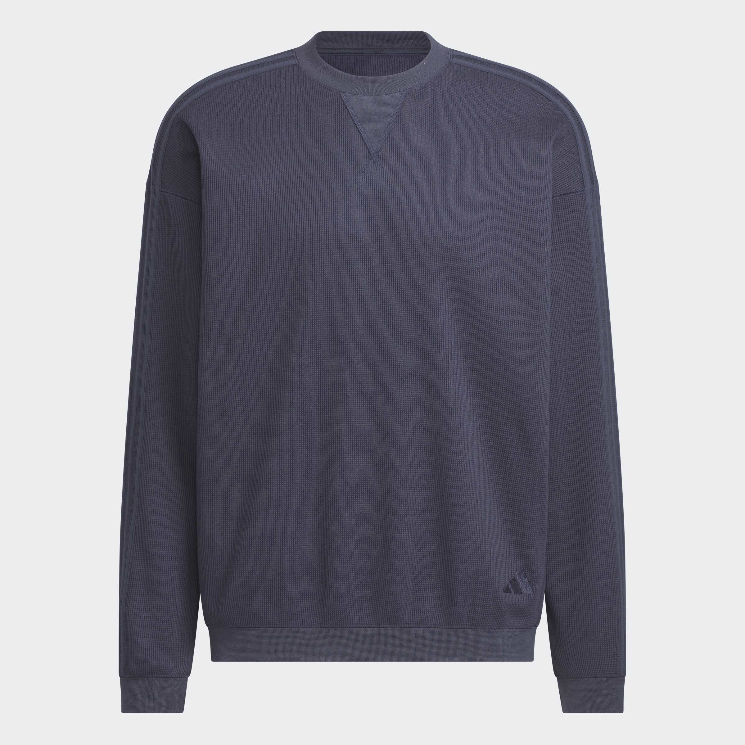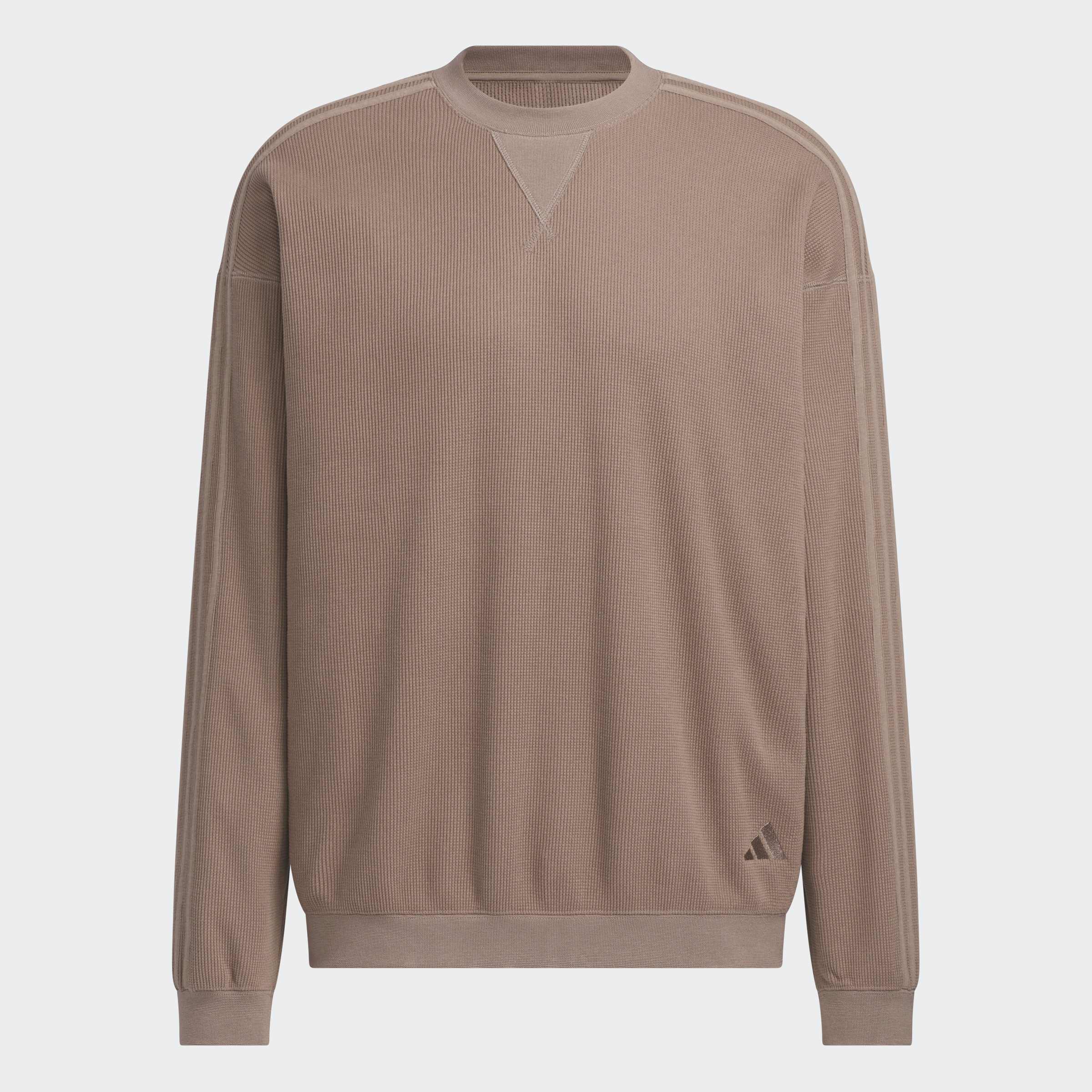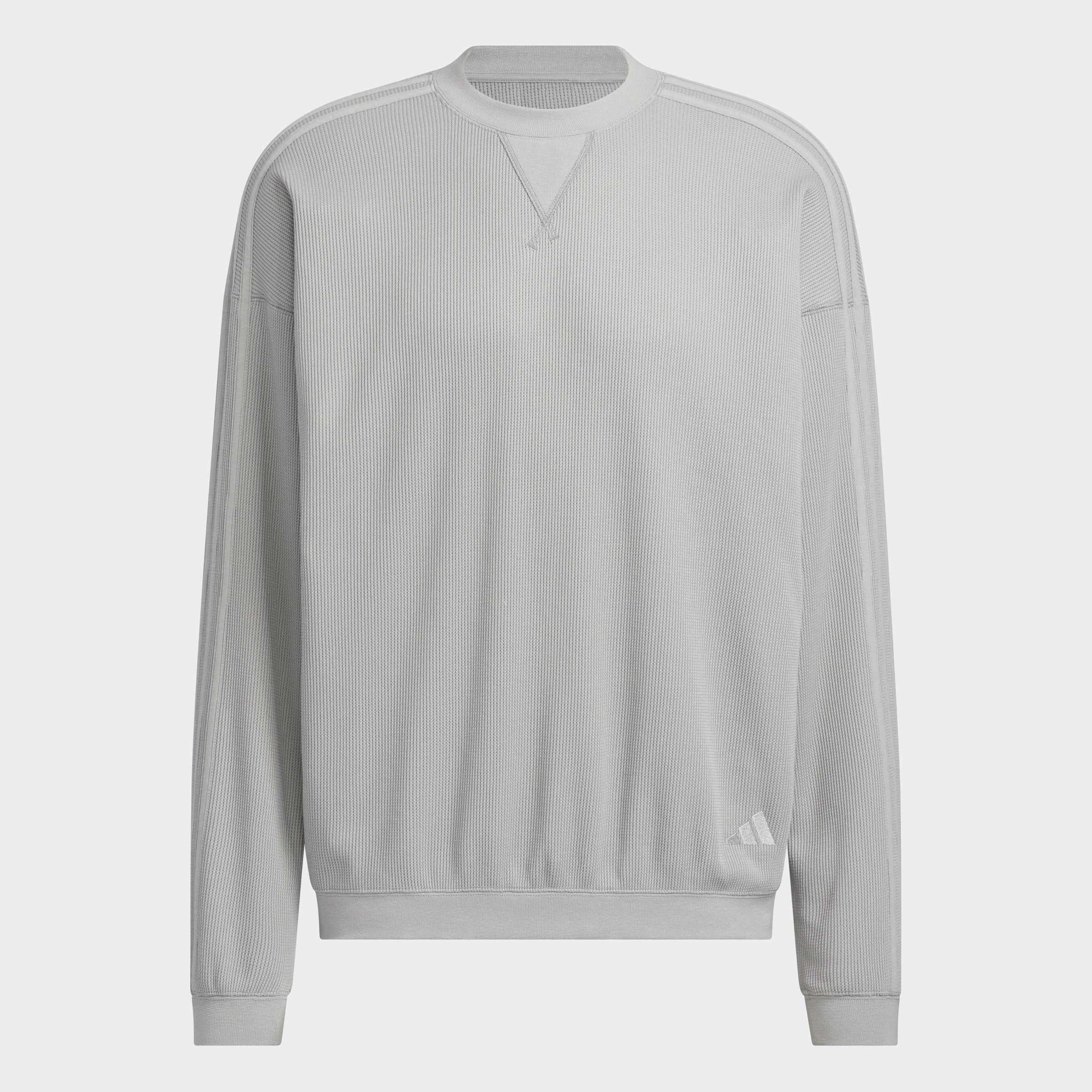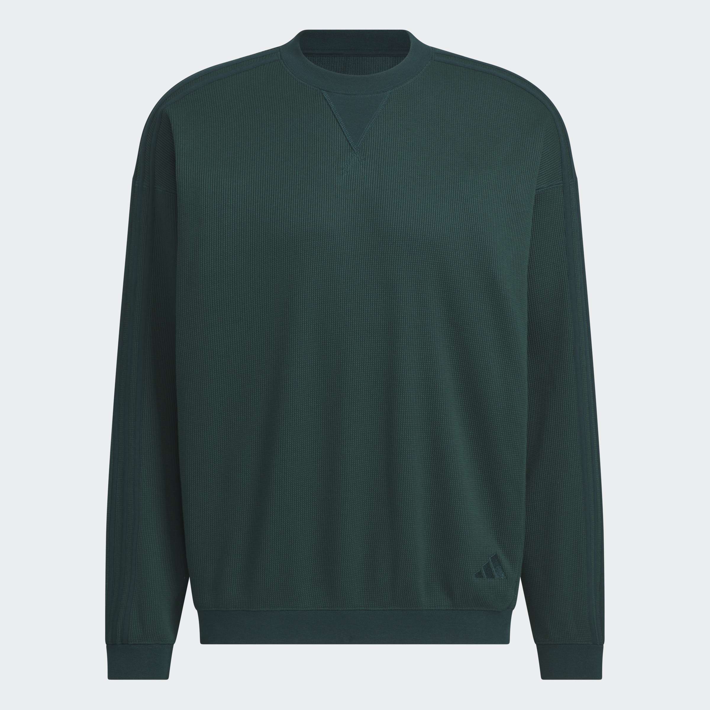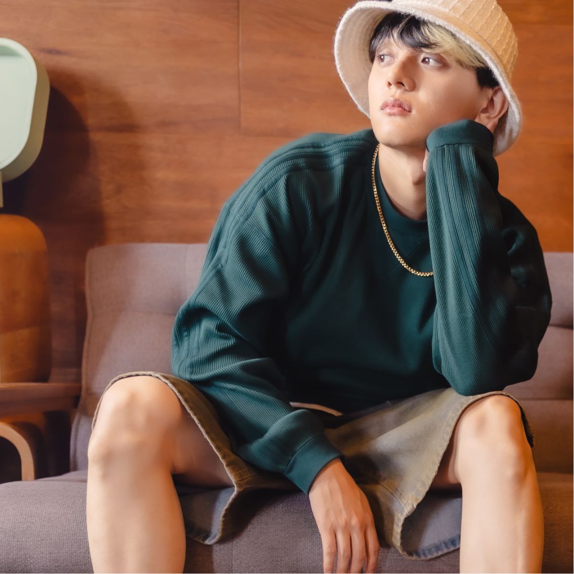 袖や裾のリブや首元のVガゼットにもこだわった、さらっとしたワッフルの素材感が特徴のクルーネックスウェット。