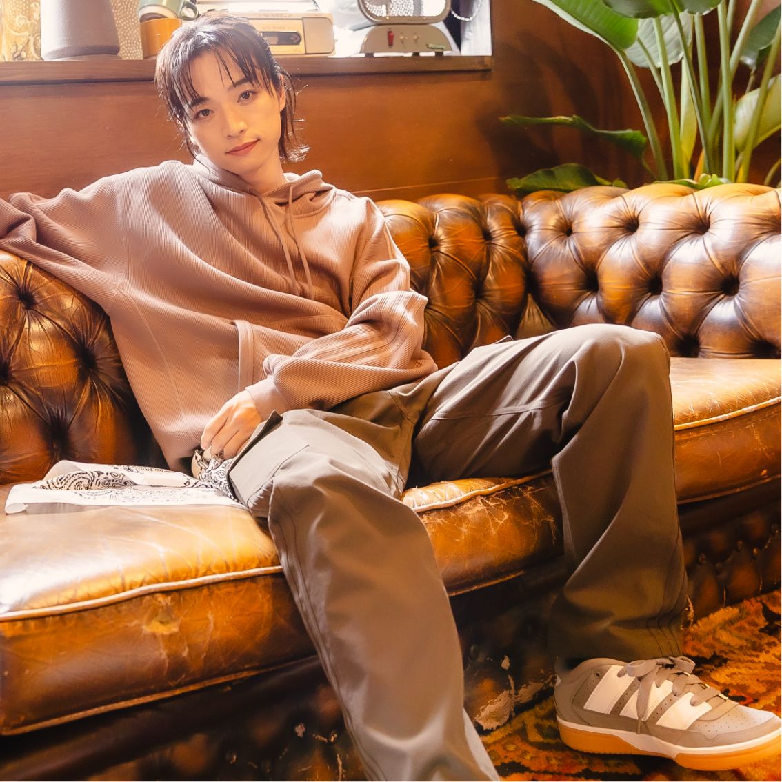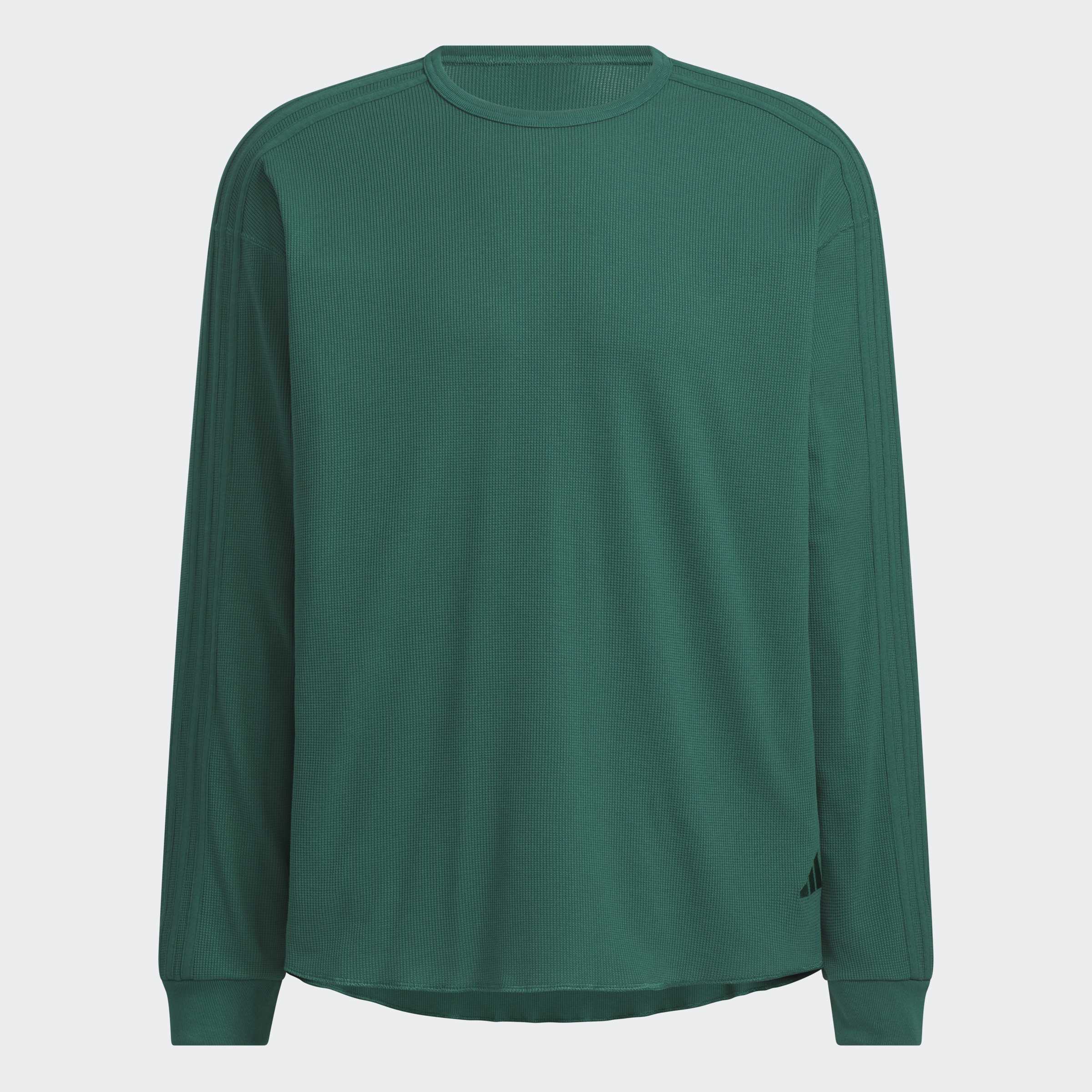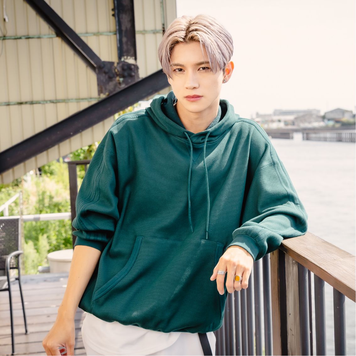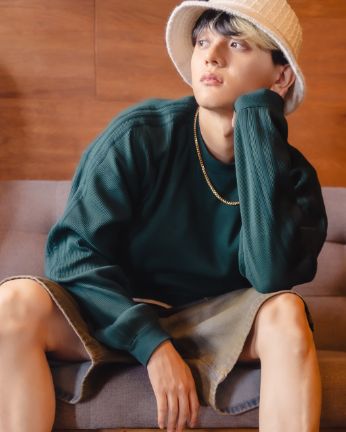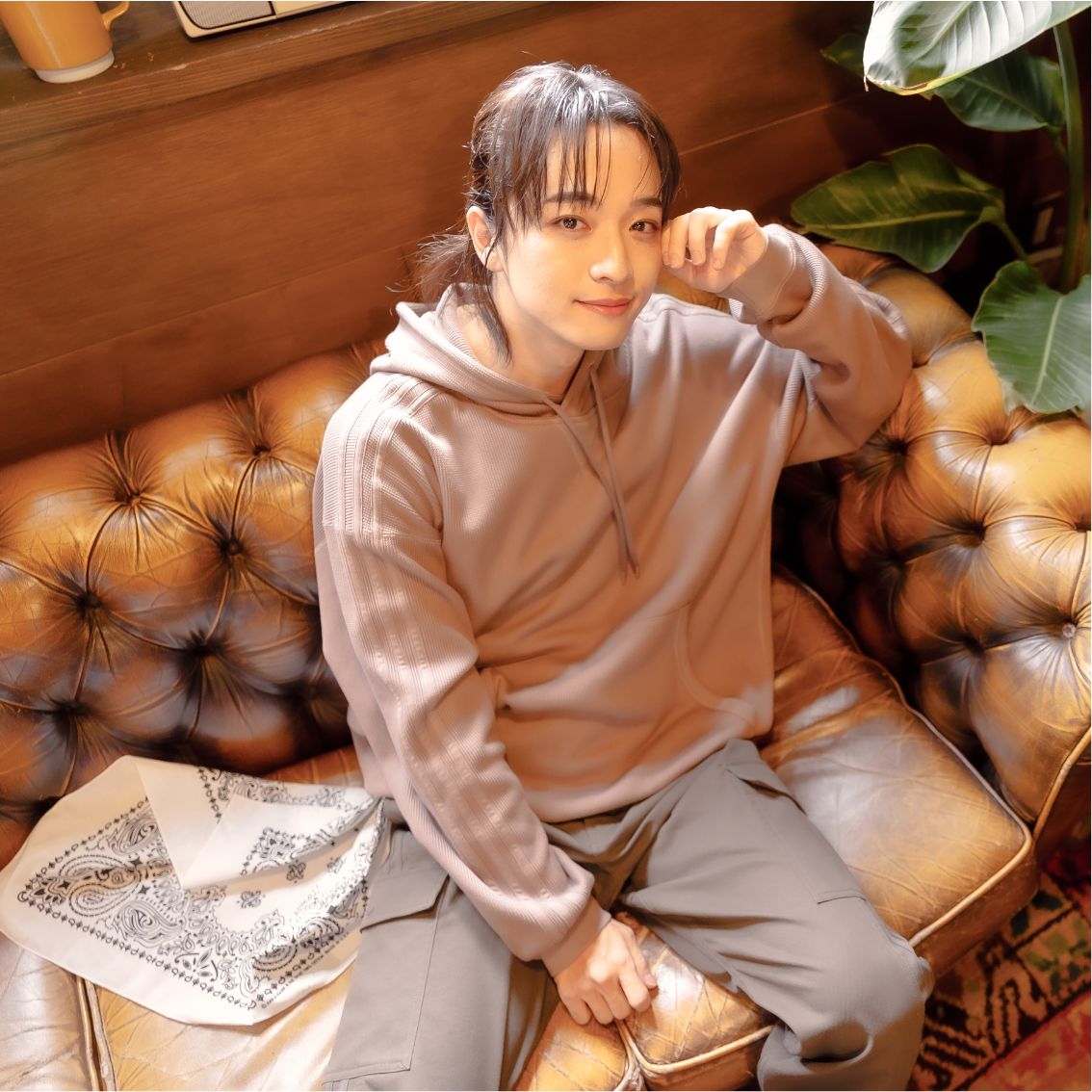 袖や裾のリブや首元のVガゼットにもこだわった、さらっとしたワッフルの素材感が特徴のクルーネックスウェット。
