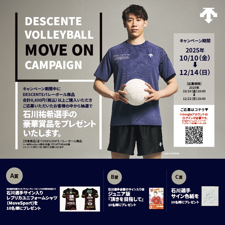 キャンペーン期間中にデサントバレーボール商品を購入して、石川祐希選手の豪華賞品をゲットしよう!