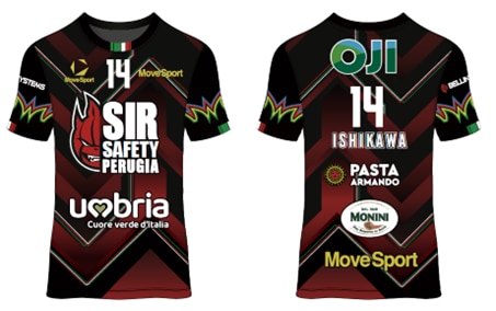 石川選手所属のシル・サフェーティ・ペルージャの来日を記念し、石川選手サイン入りレプリカユニフォームシャツ(MOVE SPORT)