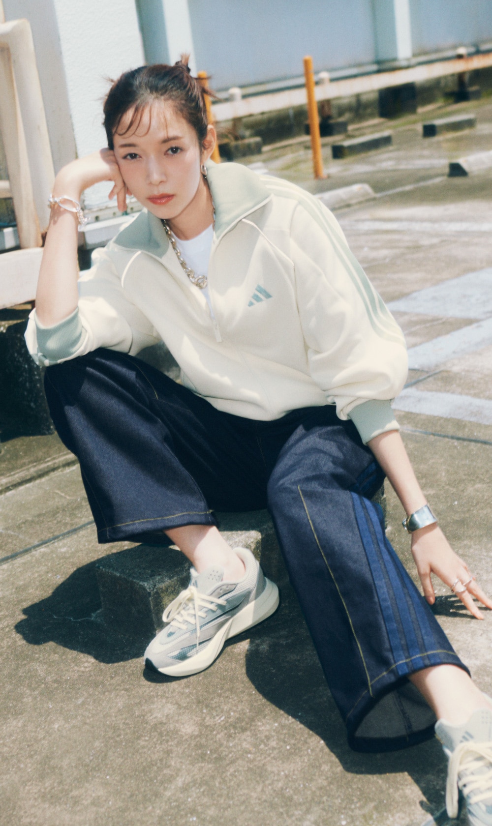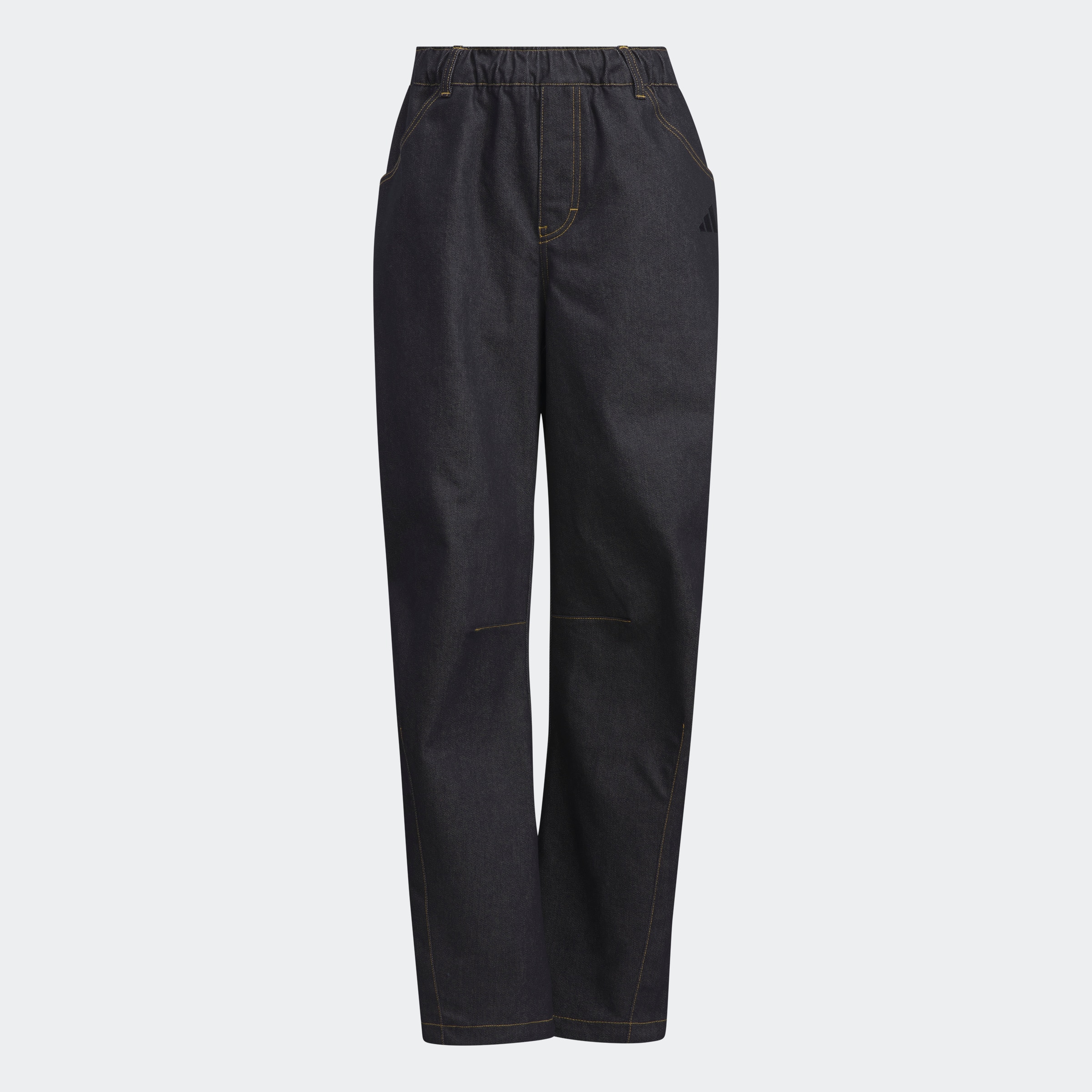 MORE軽撥水機能が付いたストレッチデニム素材。トレンドのカーブシルエットを膝と裾のダーツで取りながら、裾にドローコードとストッパーでシルエット調整。トーナルなサテン調のスリーストライプスがデザインポイントでシックにまとめがらも、デニムに上品な光沢感が演出される。