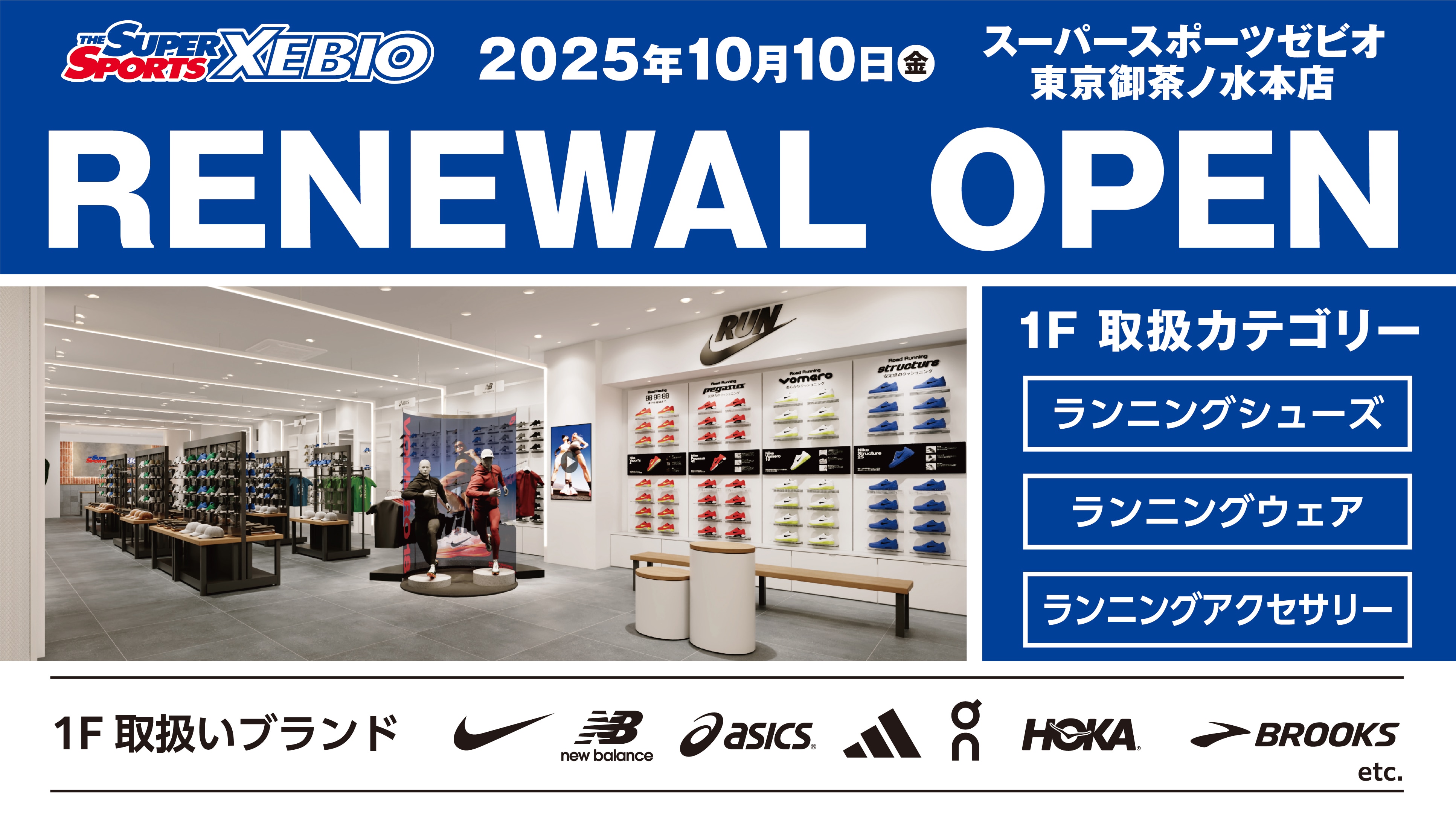 10月10日(金) スーパースポーツゼビオ東京御茶ノ水本店 ランニングシューズフロアが、 さらにパワーアップ! NIKEを中心にランニングに特化した 最新のフットウェアウォール、 強化したラインナップで トップレベルのアスリートまで 対応できる品揃えに進化! さらに、野球、サッカー、 テニス、バスケなど、あらゆる スポーツに対応するアイテムも豊富!