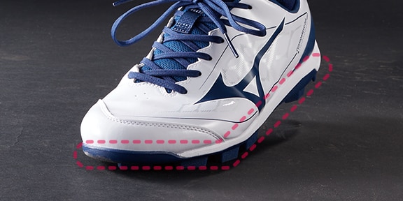 投球時・バッティング時に擦れやすいつま先を補強し耐久性を向上しました。