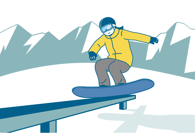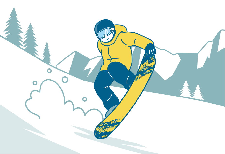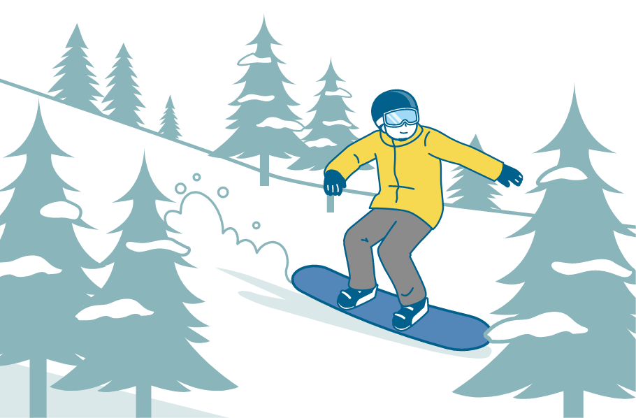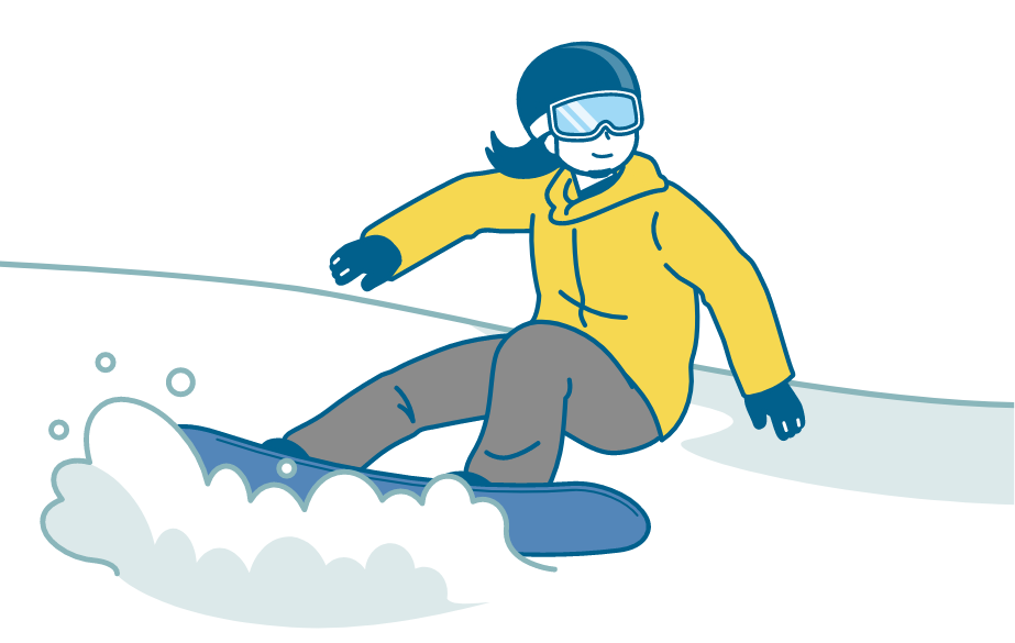 スピードと安定感重視の滑り。板のエッジをしっかり使い、雪を削るように曲がる。