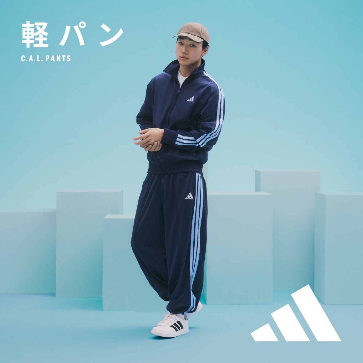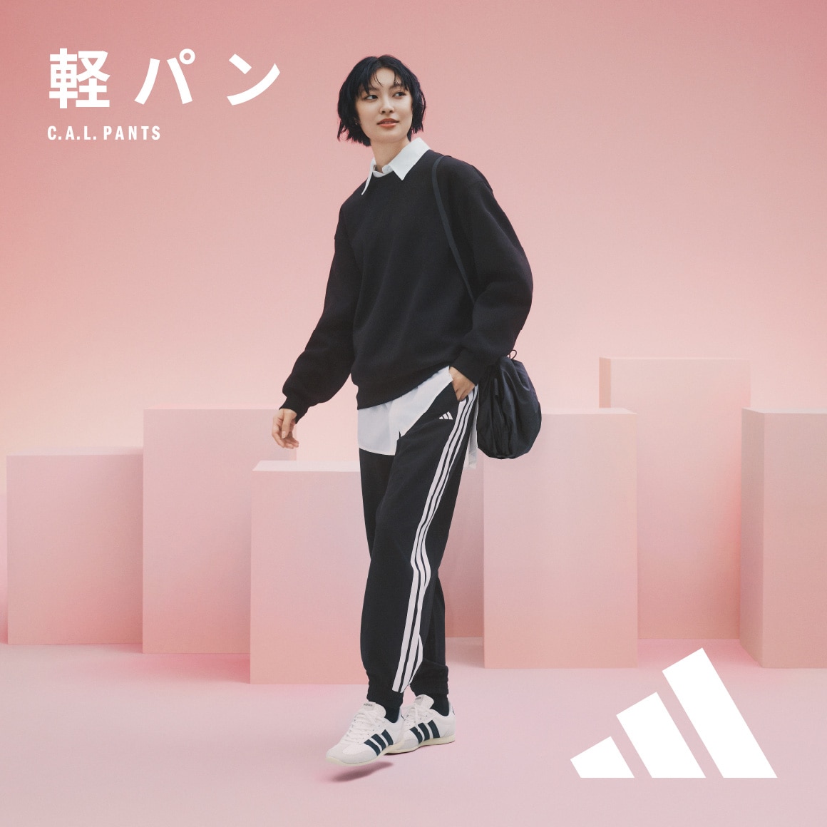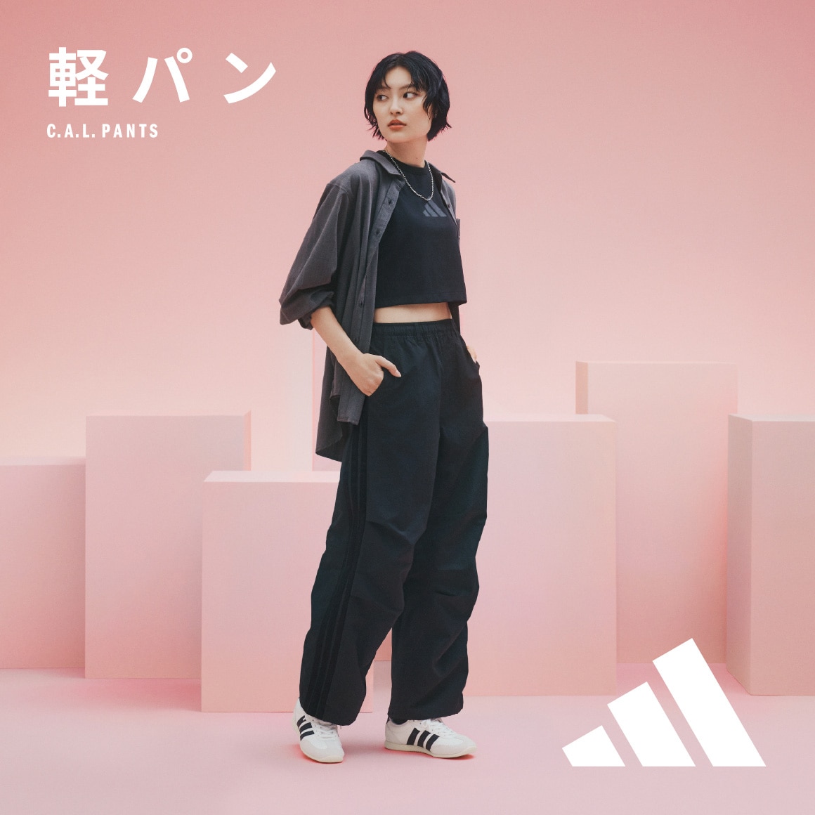 スポーティなパンツなので、あえてトレンチコートやボタンシャツをあわせて上品なスポカジコーデがおすすめ。