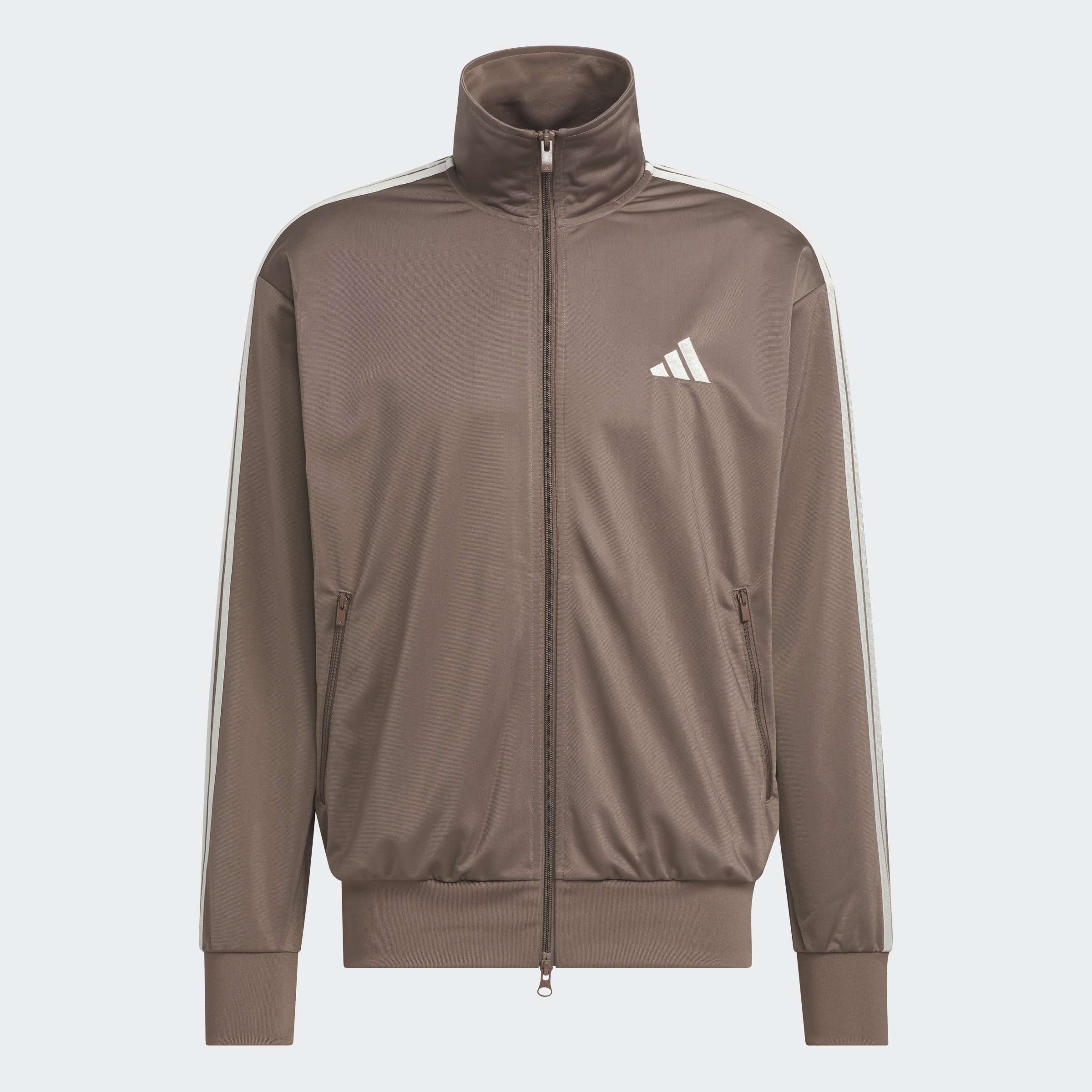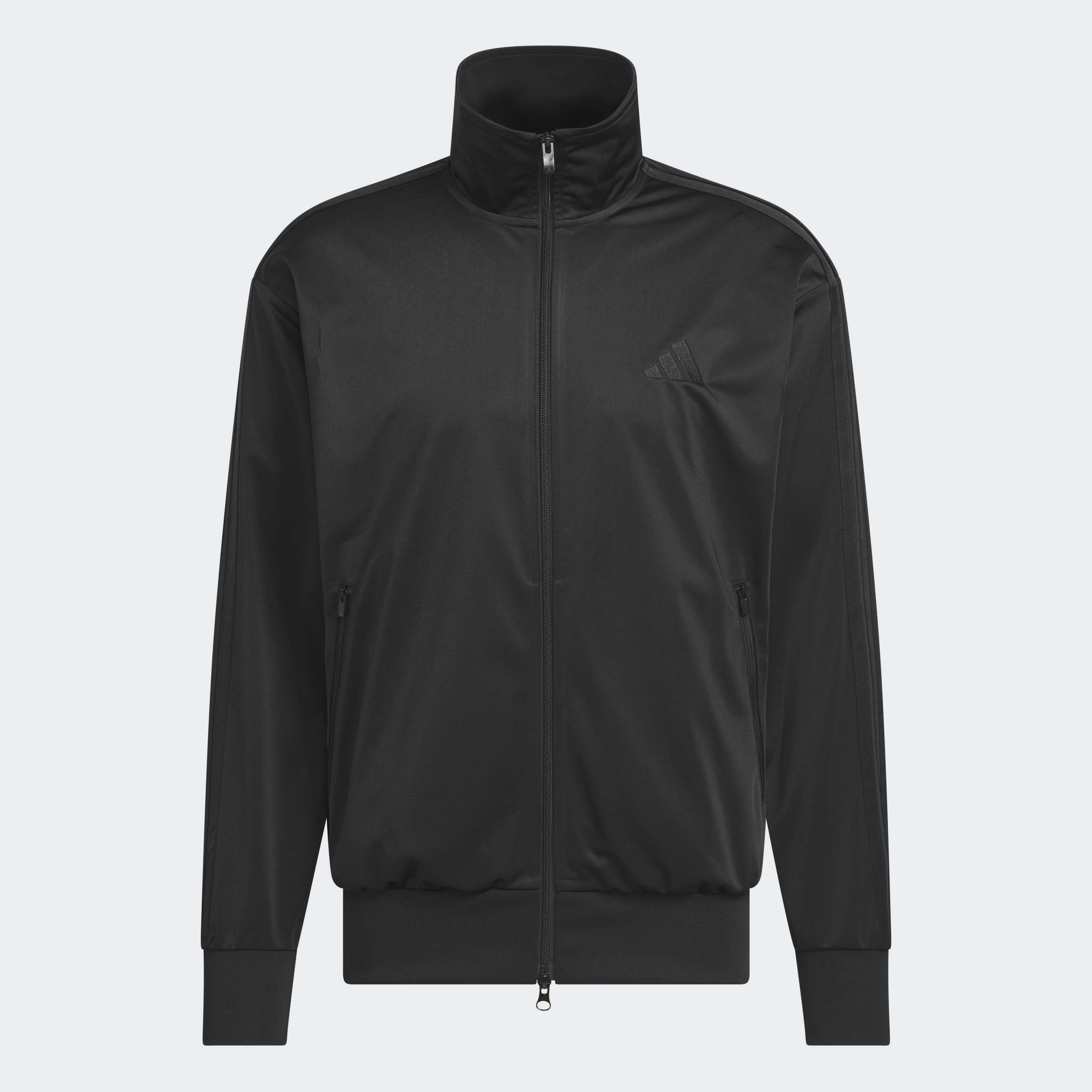 トレンド感のある太めのジャージはハーフジップが好相性。白のインナーを裾から少し出すと大人の抜け感が際立つ!