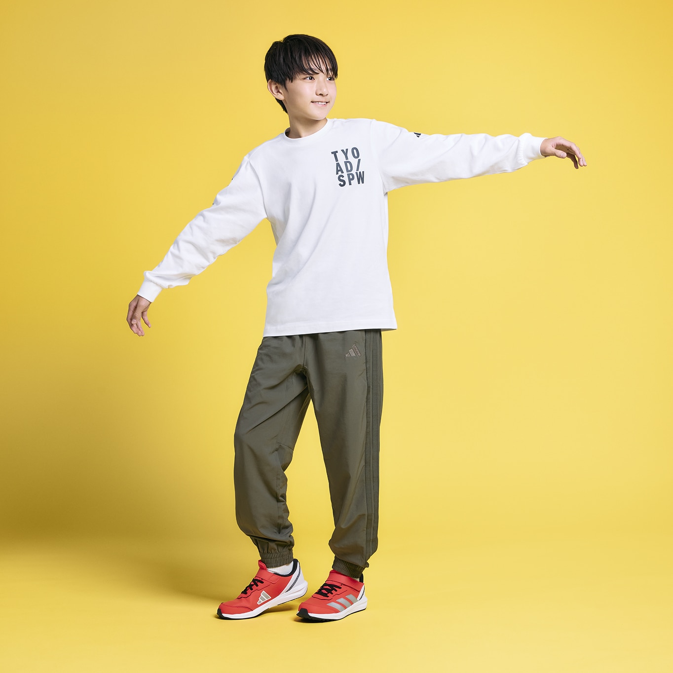 ウーブンファブリックで作られていて、遊び時間でもカジュアルなお出かけでも動きやすいレギュラーフィット。