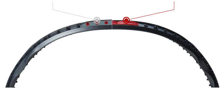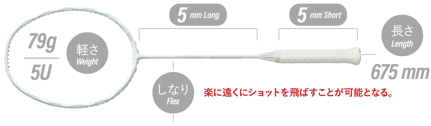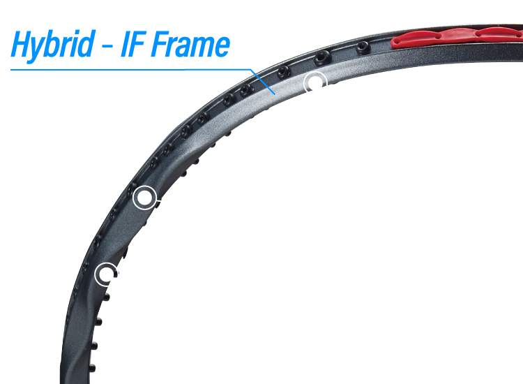 この独特な形状のフレームを生かし全体重量を軽量化。ラケットワークの疲労を軽減し、パワー効率の高いフレームが生む力強いショットがプレイヤーのプレイクオリティを向上させる。