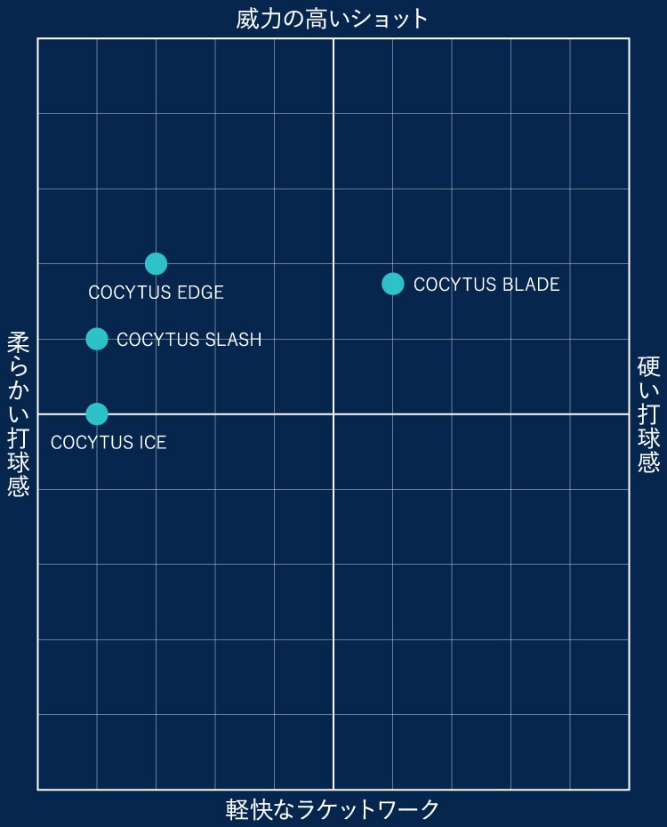 波型と六角型のハイブリッドによる形状はプレイヤーにインフェルノとは異なる球持ち感とスマッシュパワーを与えることに成功する。
