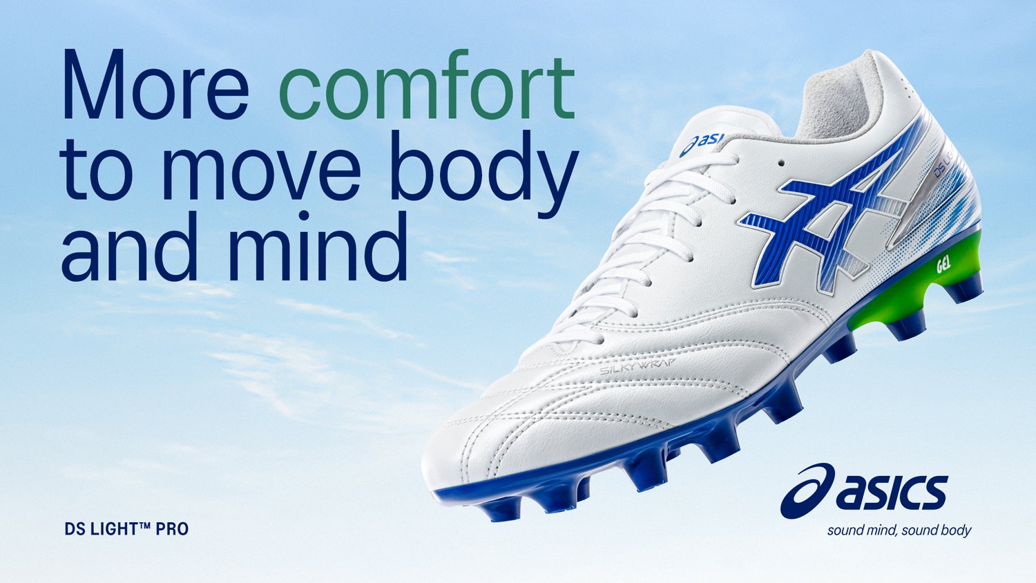 SILKYWRAP™を アッパー前足部に採用 ELITEモデルと同じ高機能素材を採用。 天然皮革よりも柔軟性と耐久性に優れ、 雨の日でも手入れの負担を減らし、快適な履き心地を維持。